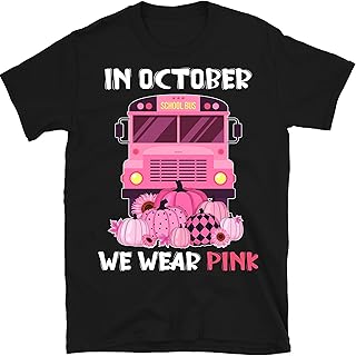 in October We Wear Pink School Bus Breast Cancer Awareness T Shirt Breast Cancer Survivor Shirt