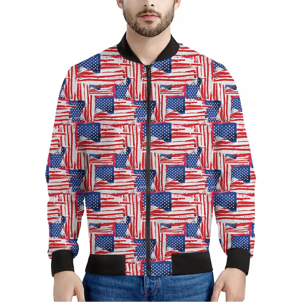 Abstract American Flag Print Bomber Jacket