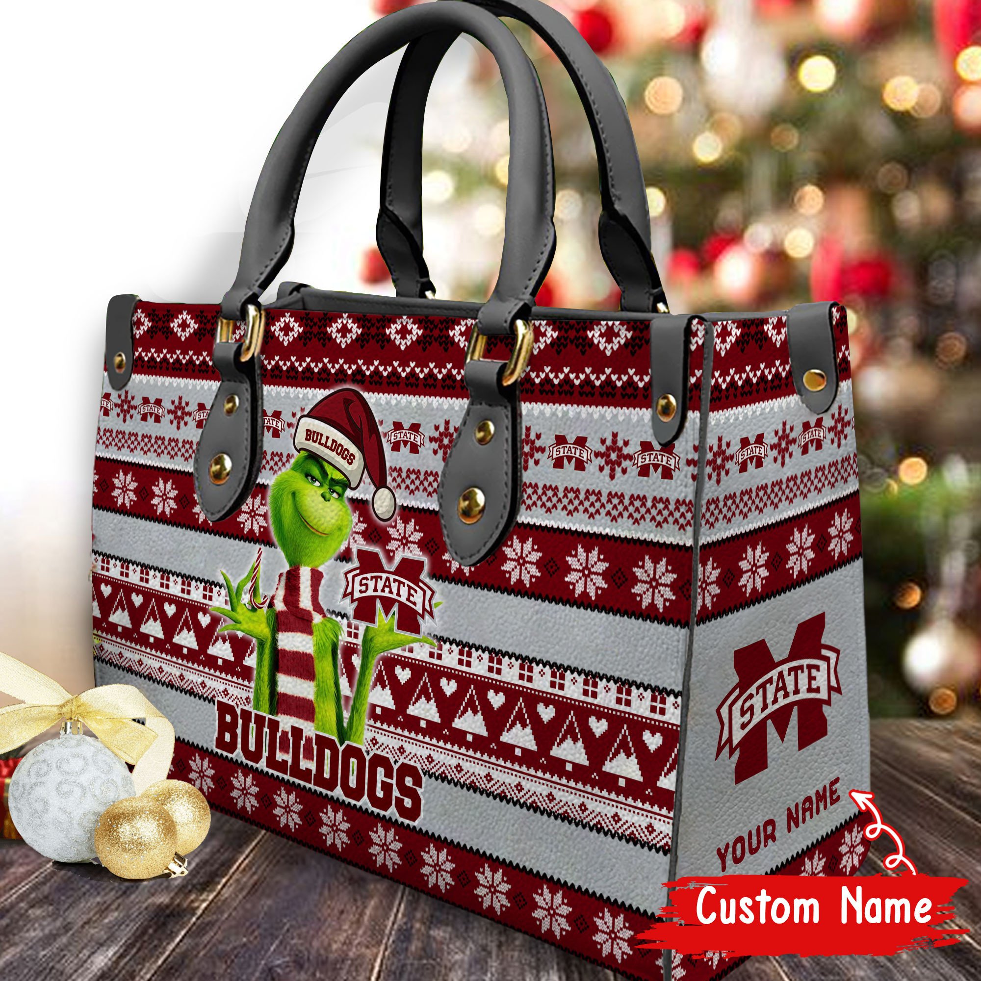Mississippi State Bulldogs Grinch Christmas Women Leather Hand Bag For Women Sport Wear Fans