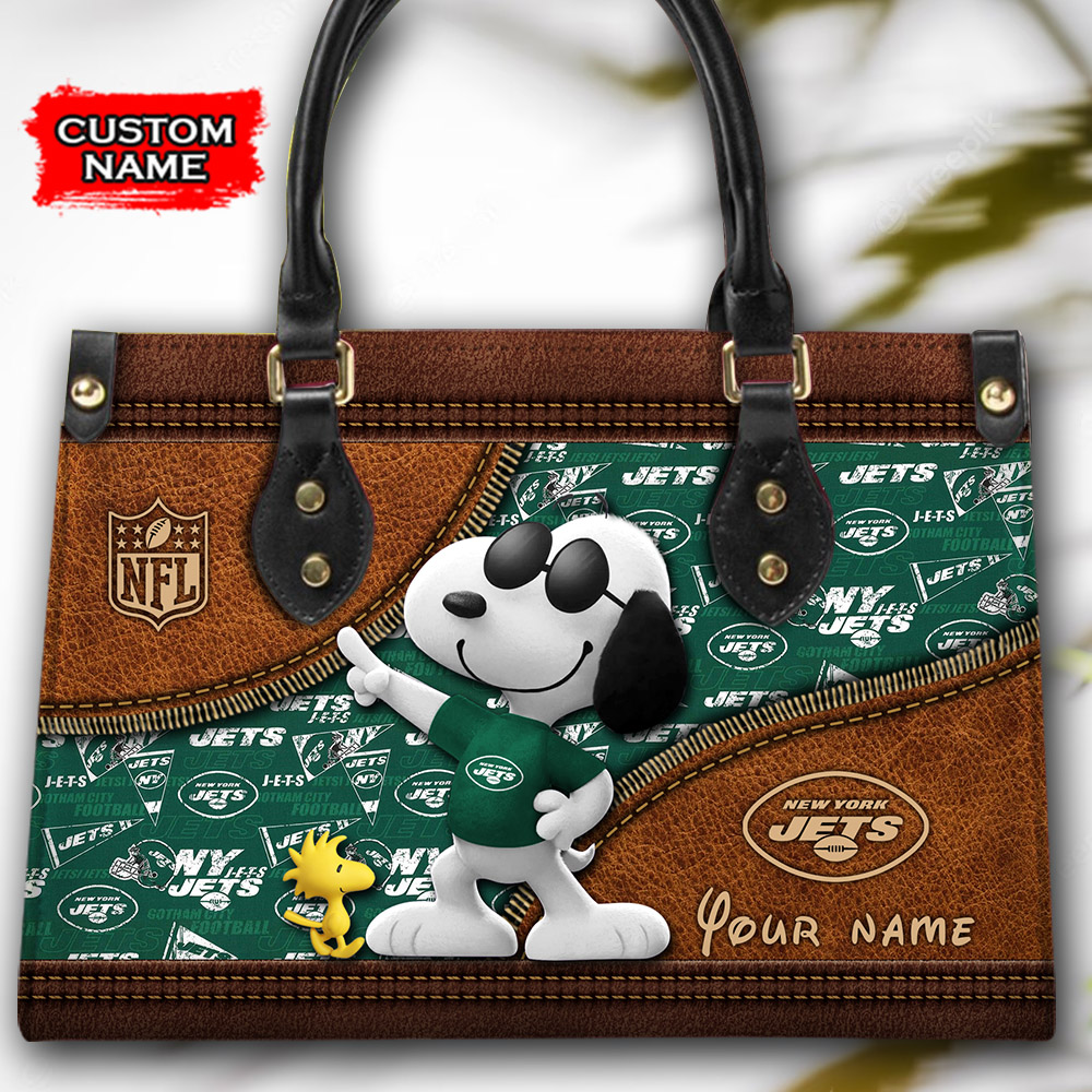 New York Jets Mickey Women Custom Name Leather Hand Bag For Women Sport Wear Fans