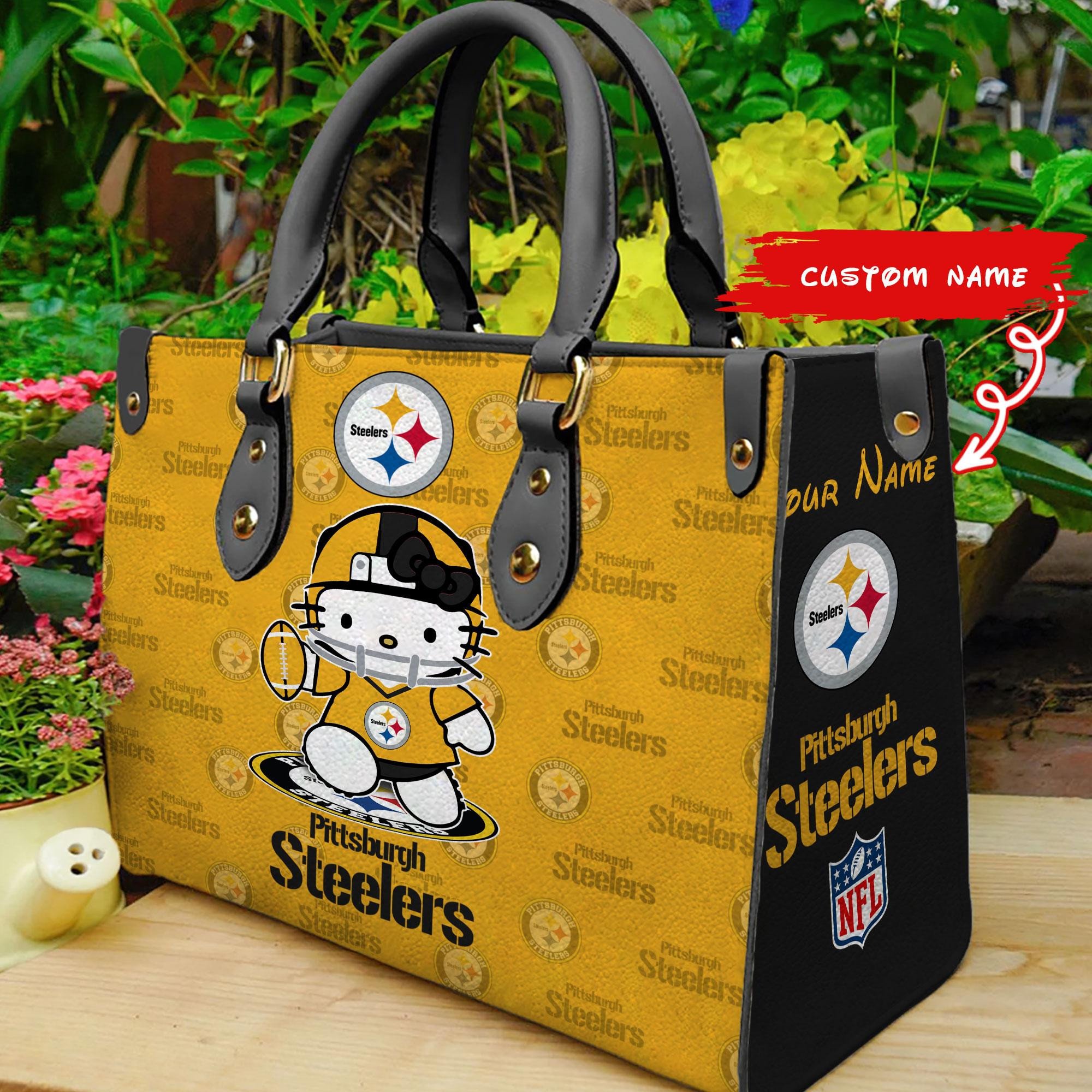 Pittsburgh Steelers Kitty Women Custom Name Leather Hand Bag For Women Sport Wear Fans