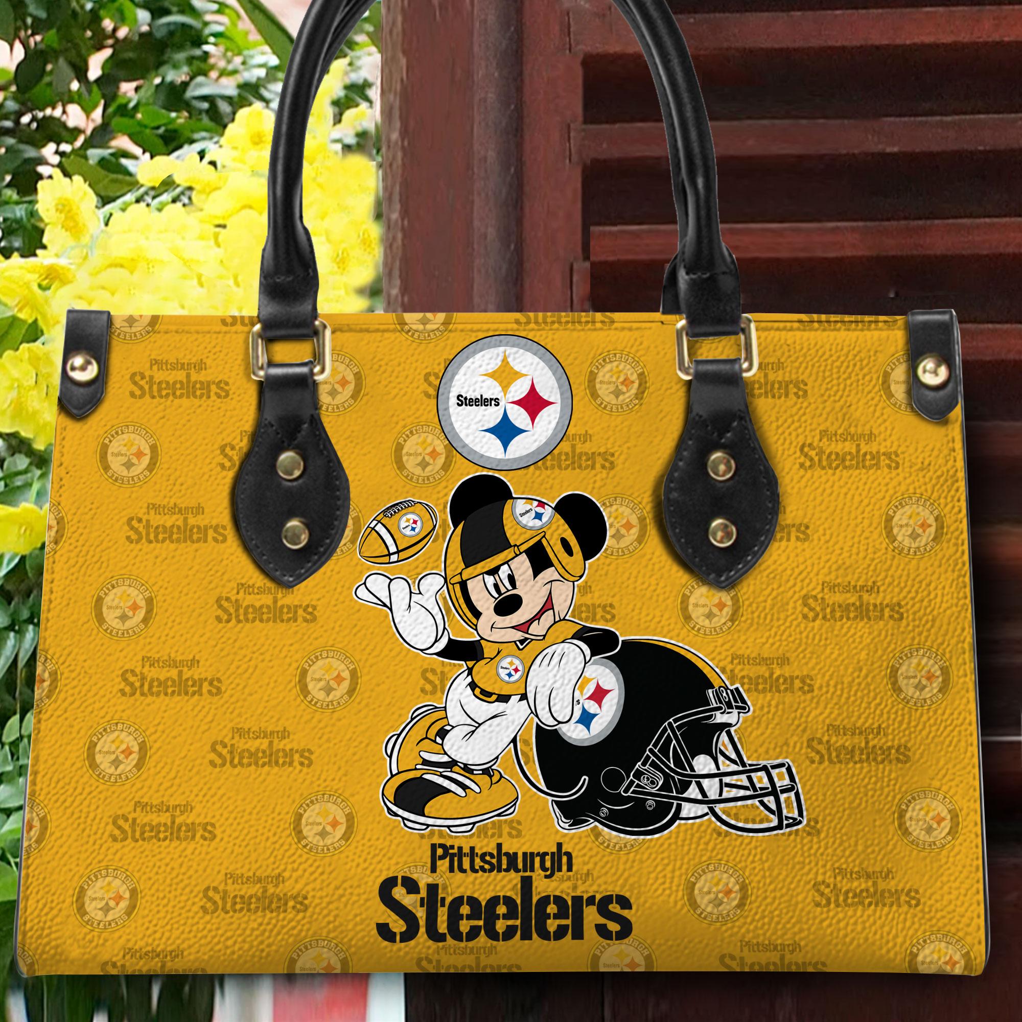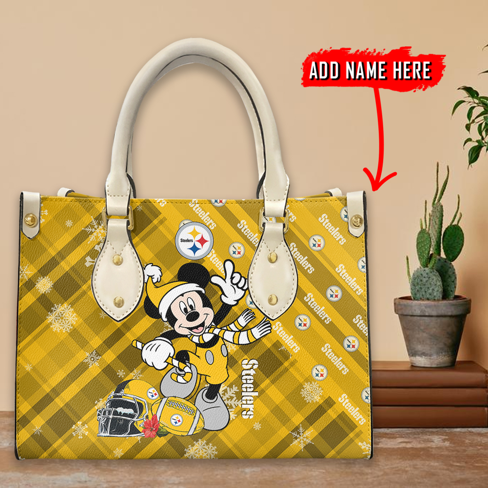 Pittsburgh Steelers Mickey Women Custom Name Leather Hand Bag For Women Sport Wear Fans