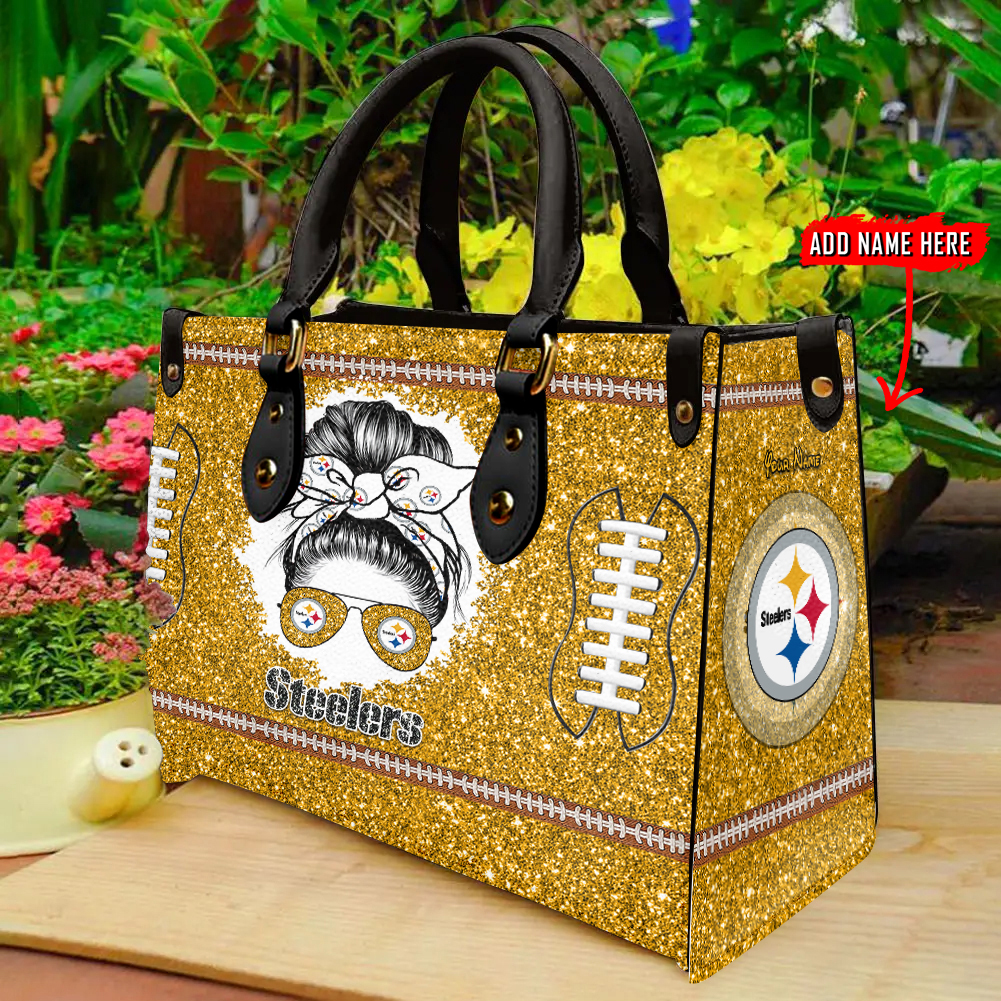 Pittsburgh Steelers Stitch Women Custom Name Leather Hand Bag For Women Sport Wear Fans