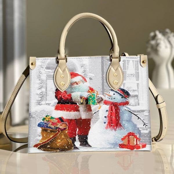 Santa Clause And Snow Man Christmas Leather Bag Handbag