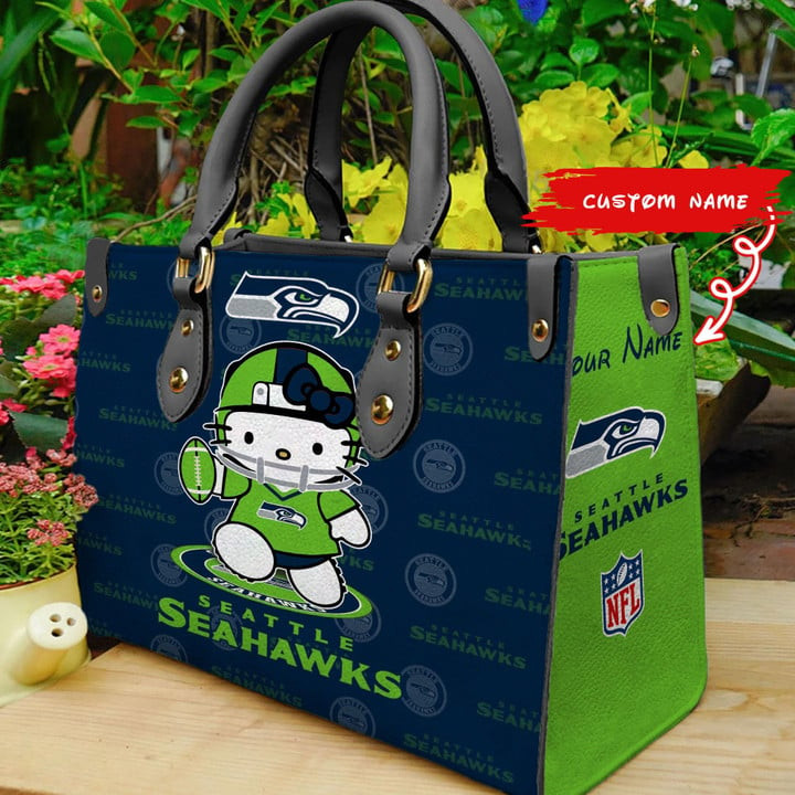Seattle Seahawks Kitty Women Custom Name Leather Hand Bag For Women Sport Wear Fans