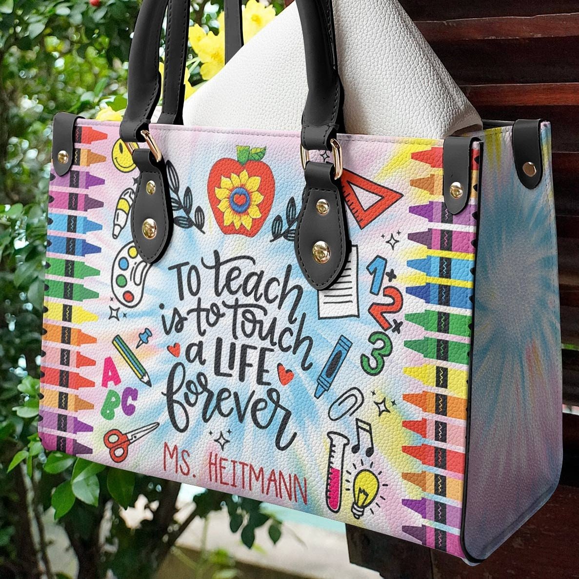 Teacher Pesonalized Scyrub Leather Bag Tie Dye Teacher