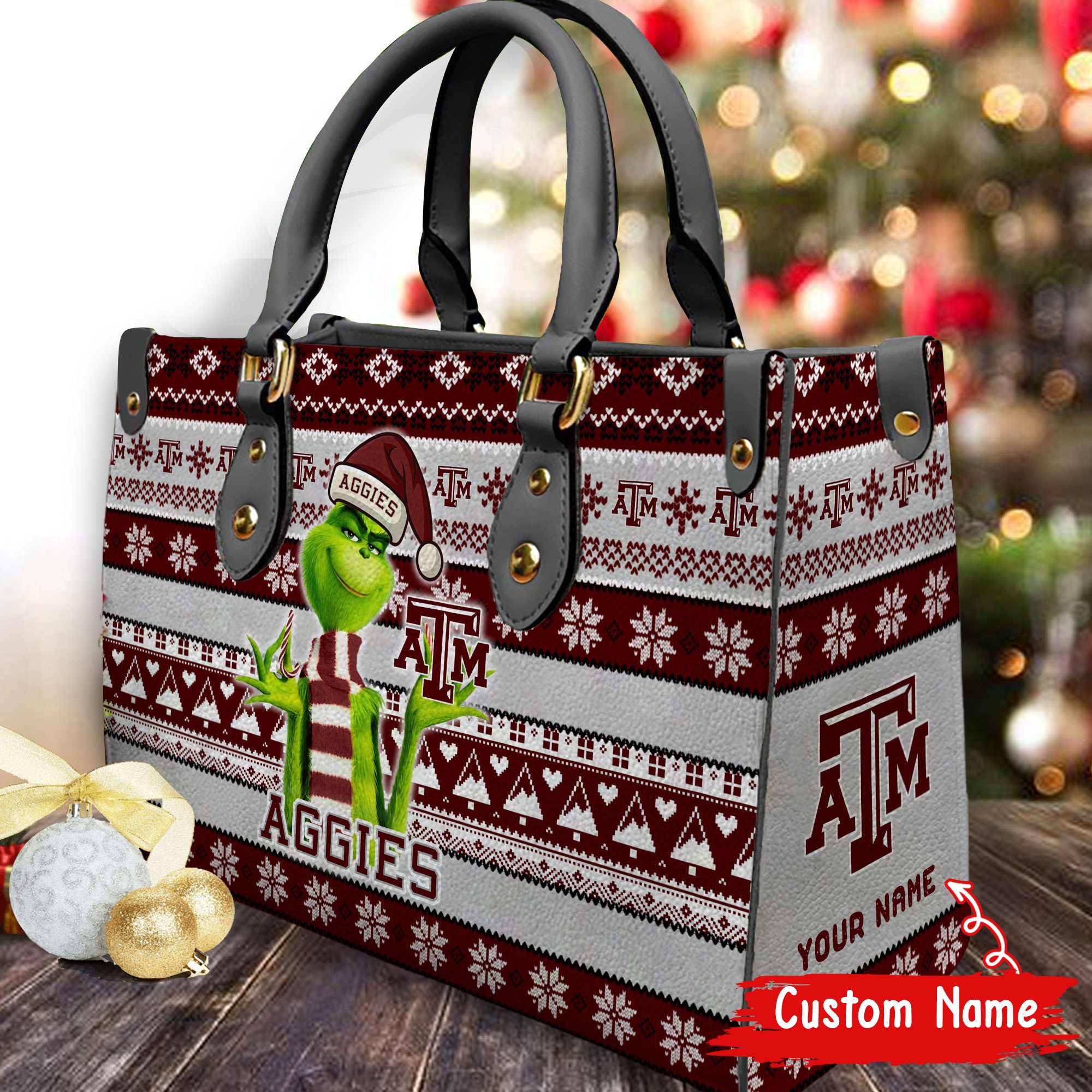 Texas A_M Aggies Grinch Christmas Women Leather Hand Bag For Women Sport Wear Fans