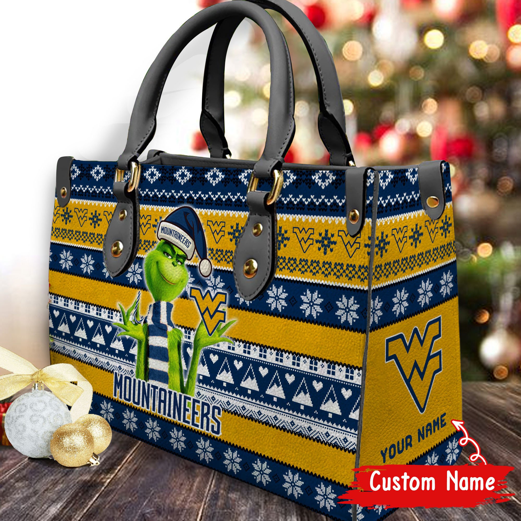 West Virginia Mountaineers Grinch Christmas Women Leather Hand Bag For Women Sport Wear Fans