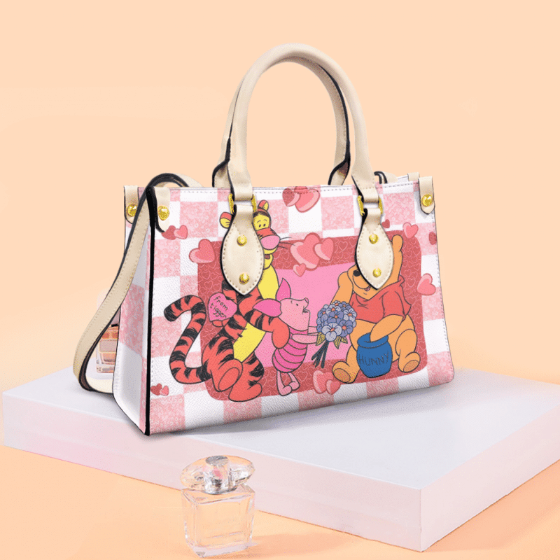 Winnie The Pooh Friends Plaid Pink Leather Bag Handbag