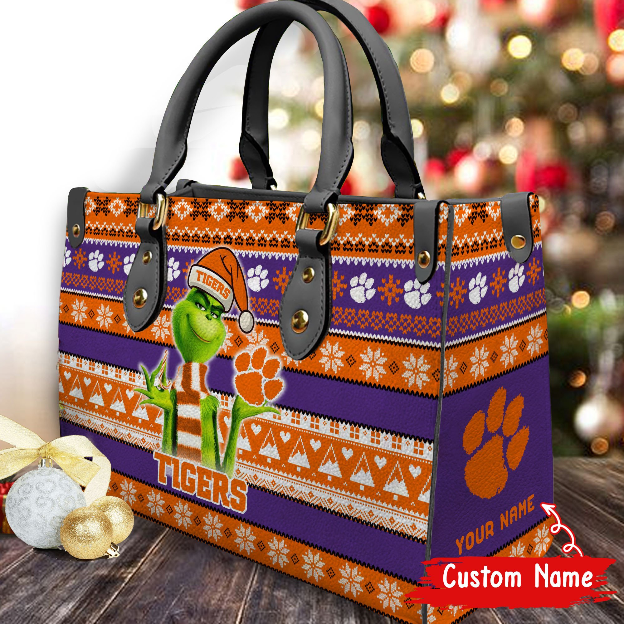 Clemson Tigers Grinch Christmas Women Leather Hand Bag For Women Sport Wear Fans