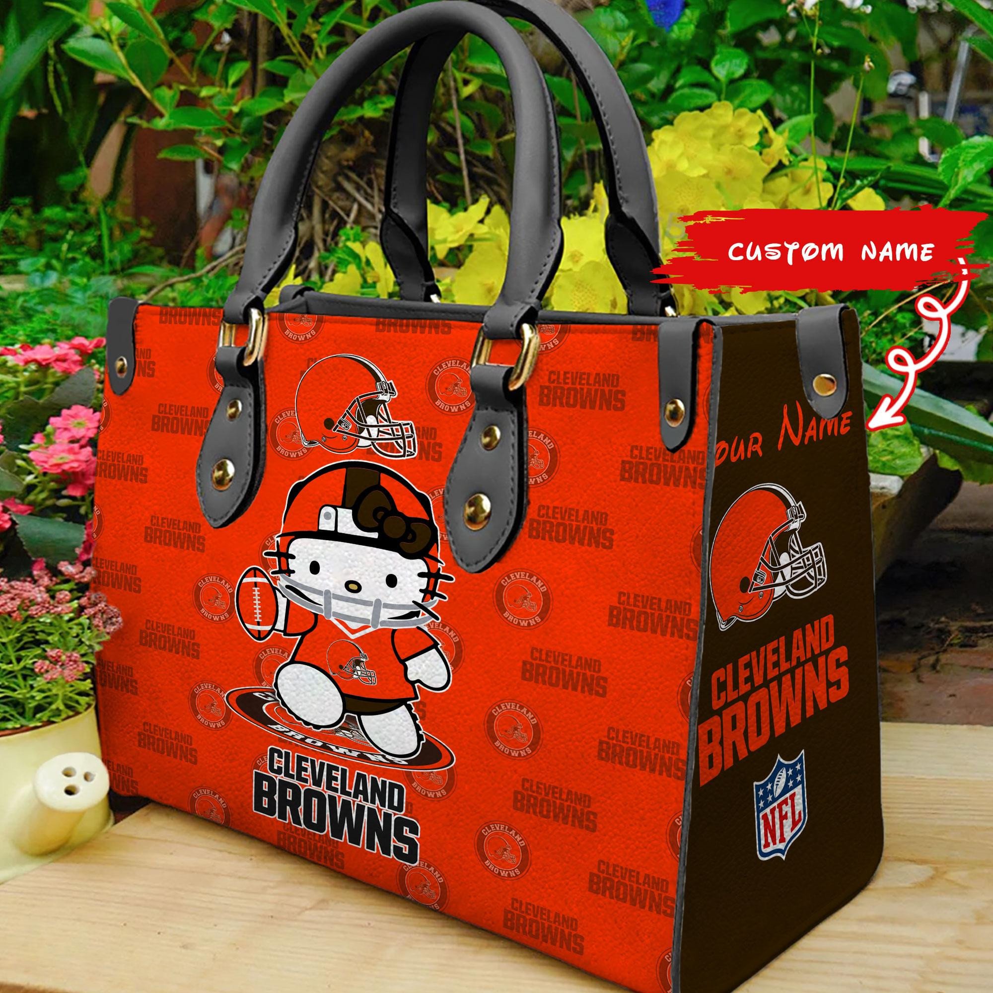 Cleveland Browns Kitty Women Custom Name Leather Hand Bag For Women Sport Wear Fans