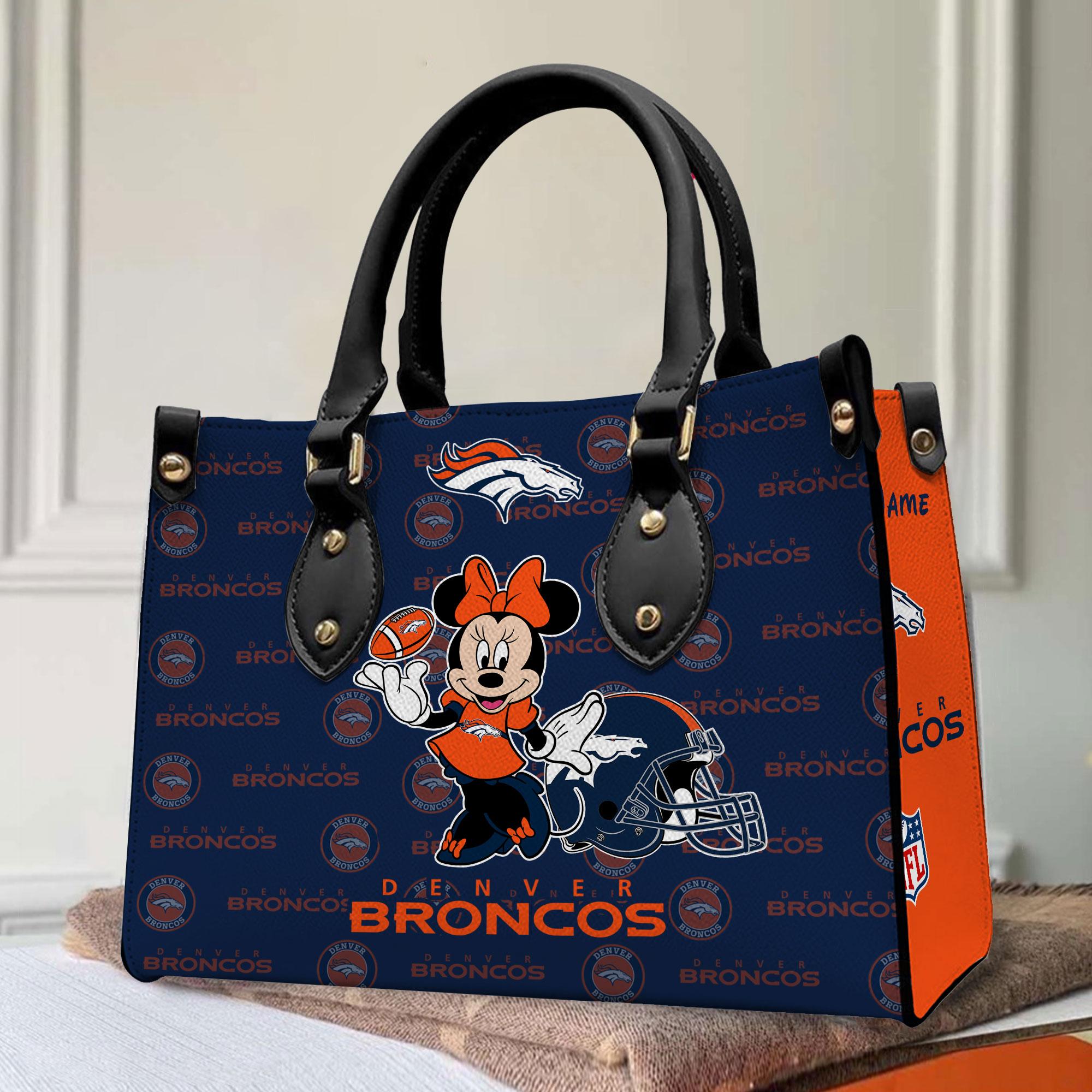 Denver Broncos Mickey Women Custom Name Leather Hand Bag For Women Sport Wear Fans