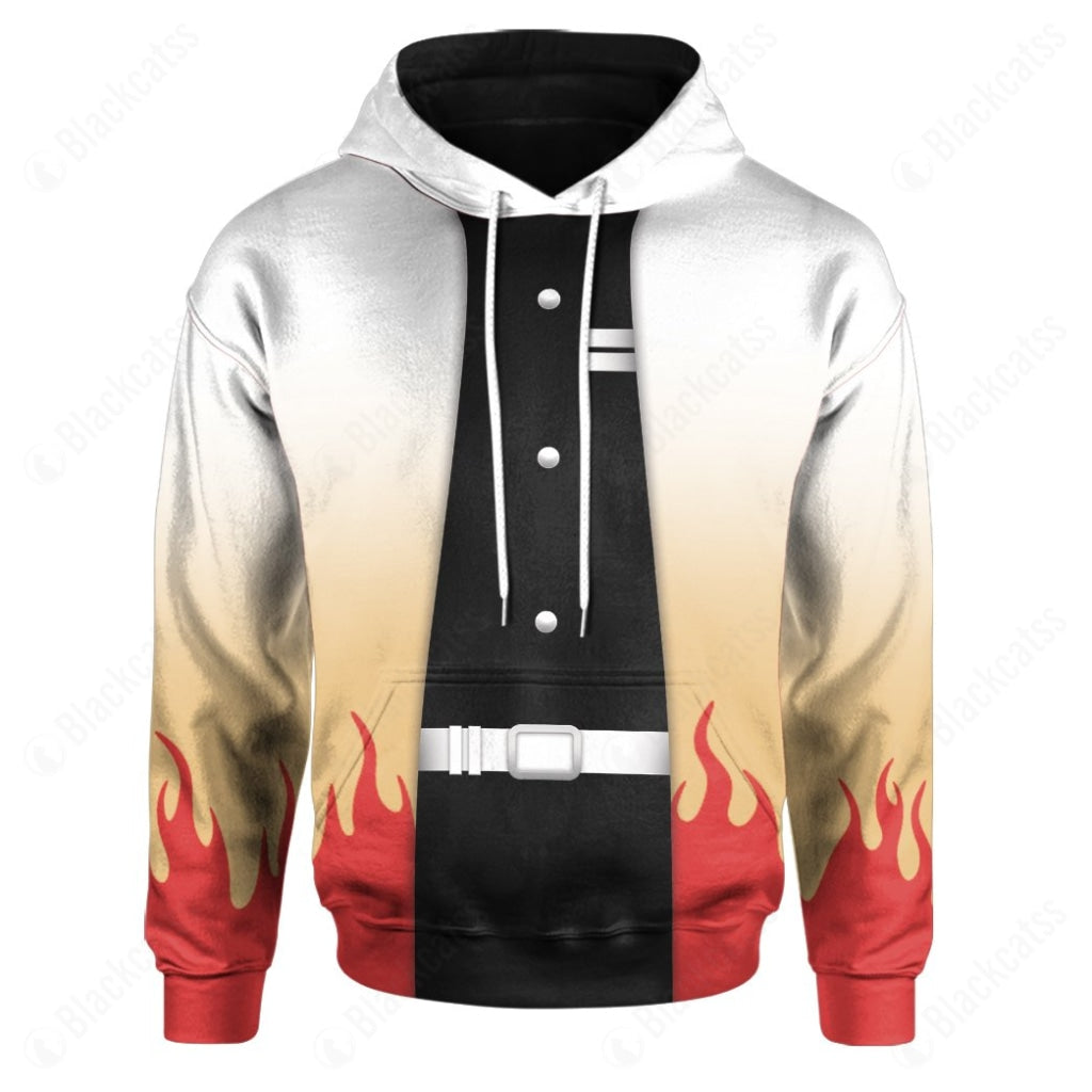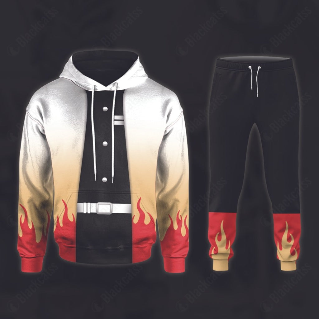 Anime Demon Slayer Kimetsu No Yaiba Flame Hashira Kyojuro Rengoku Costume Cosplay Hoodie Tracksuiit Sweatpants Cosplaytracksuit