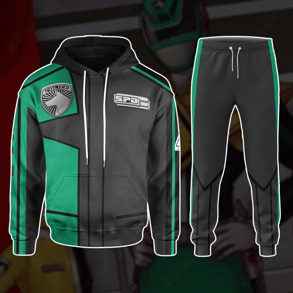 S.P.D Power Rangers S.P.D. Green Ranger B-Squad Extended Universe Costume Cosplay Hoodie Tracksuiit Sweatpants Cosplaytracksuit