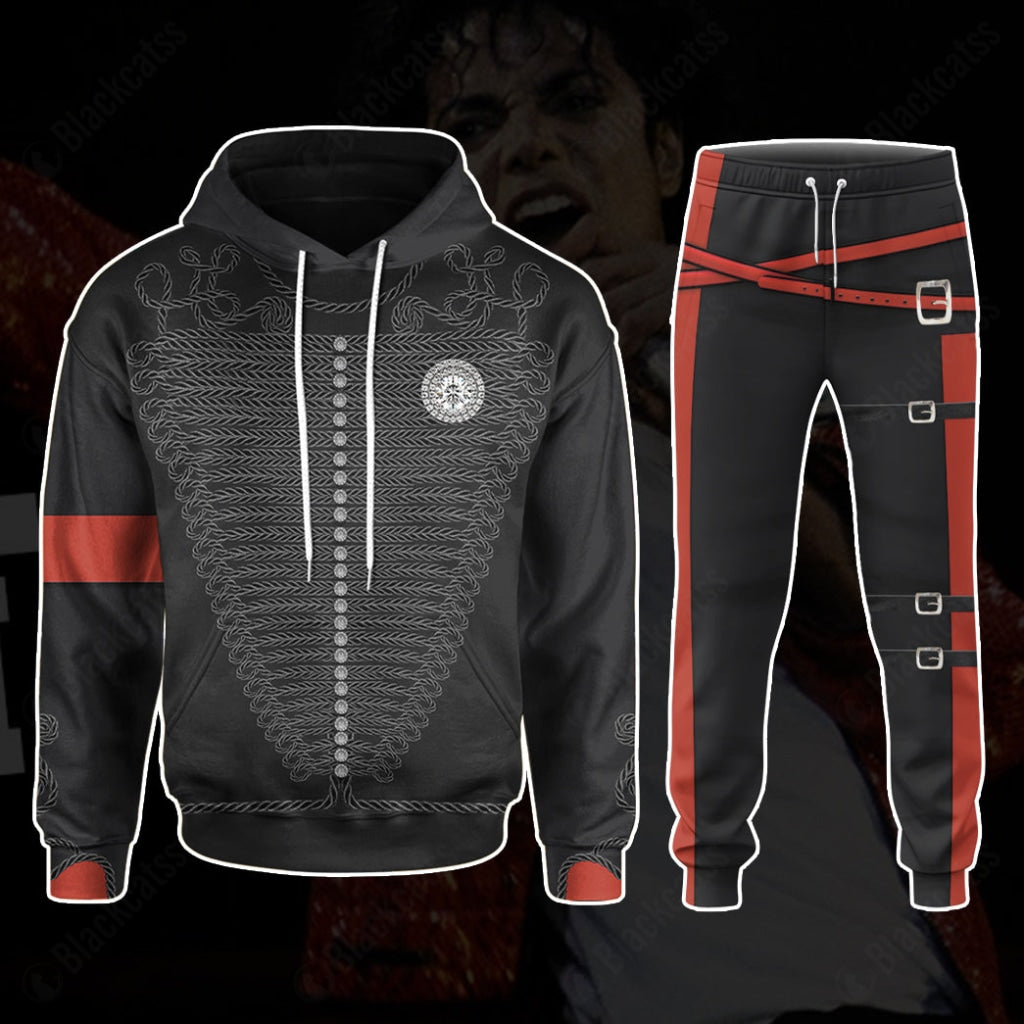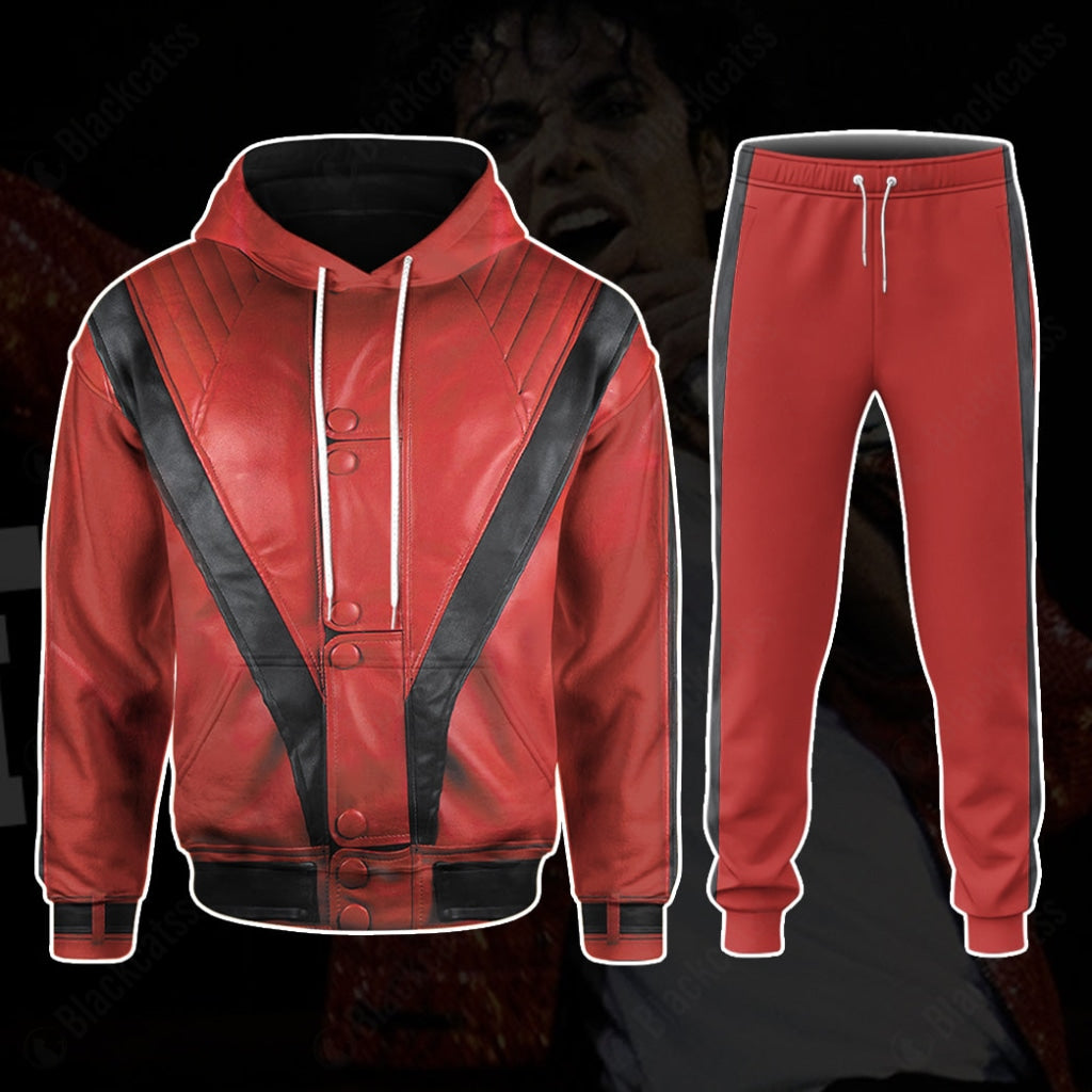 Singer King Of Pop Mj Red Suit Costume Cosplay Hoodie Tracksuiit Sweatpants Cosplaytracksuit