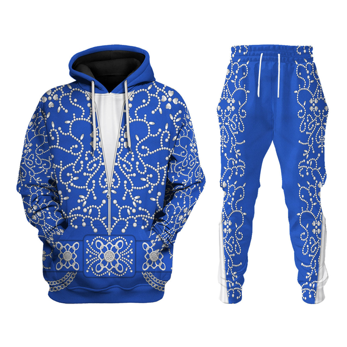 Elvis Blue Swirl Costume Hoodie Tracksuiit Sweatpants Cosplay