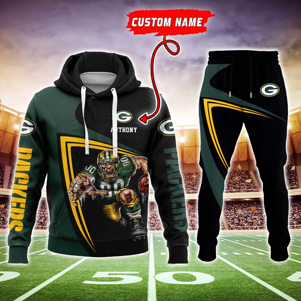 Green Bay Packers NFL Mascot Premium Sport 3D Hoodie& Jogger Personalized Name