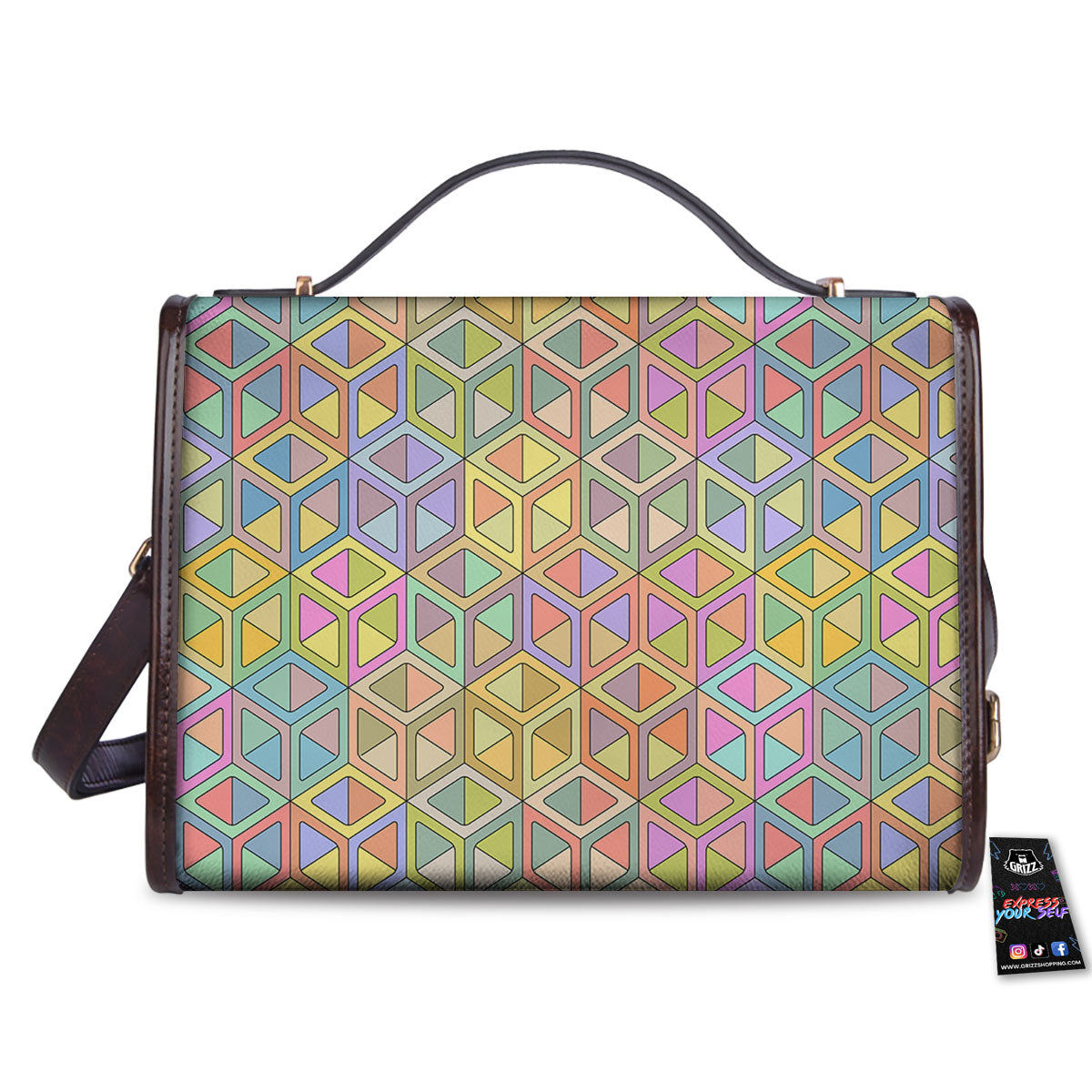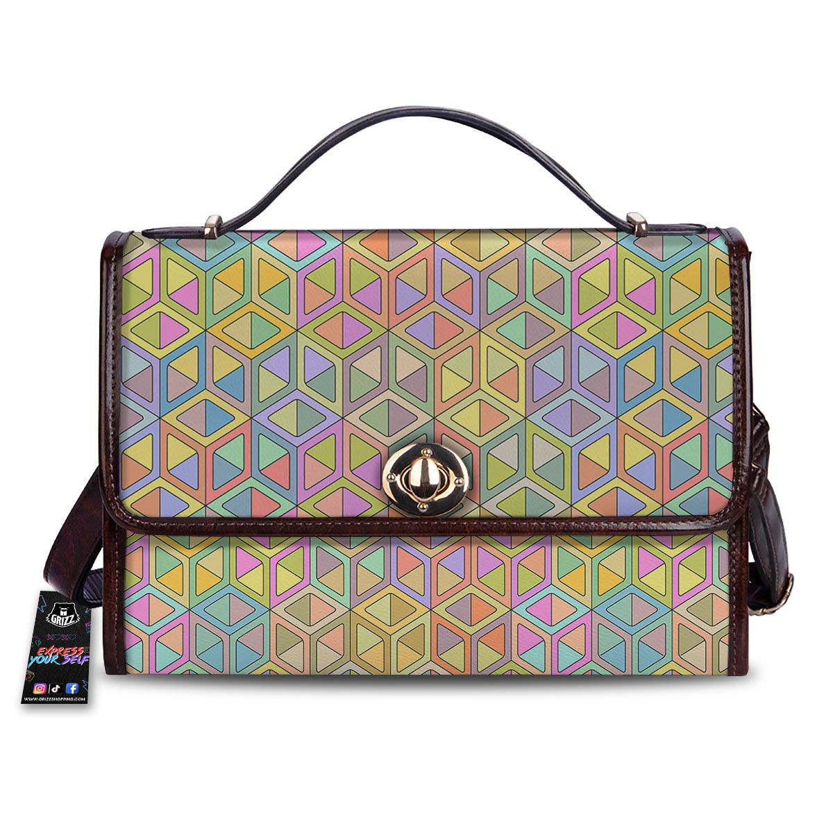 Geometric Cubic Pastel Print Women’s Satchel Bag