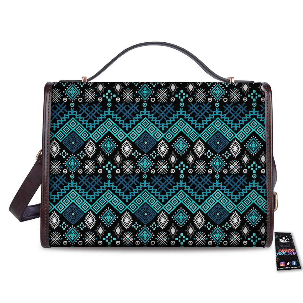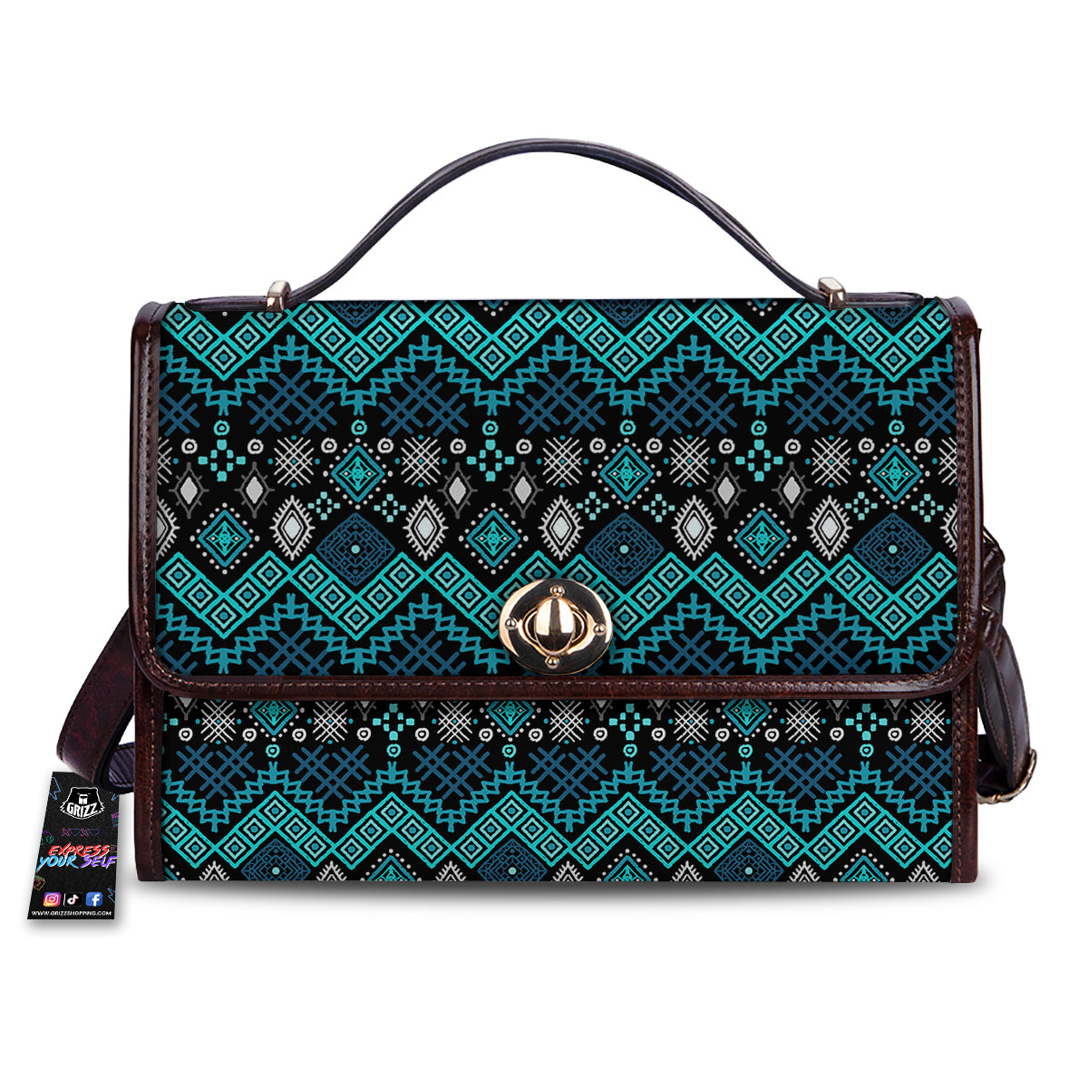 Geometric Turquoise Aztec Print Pattern Women’s Satchel Bag