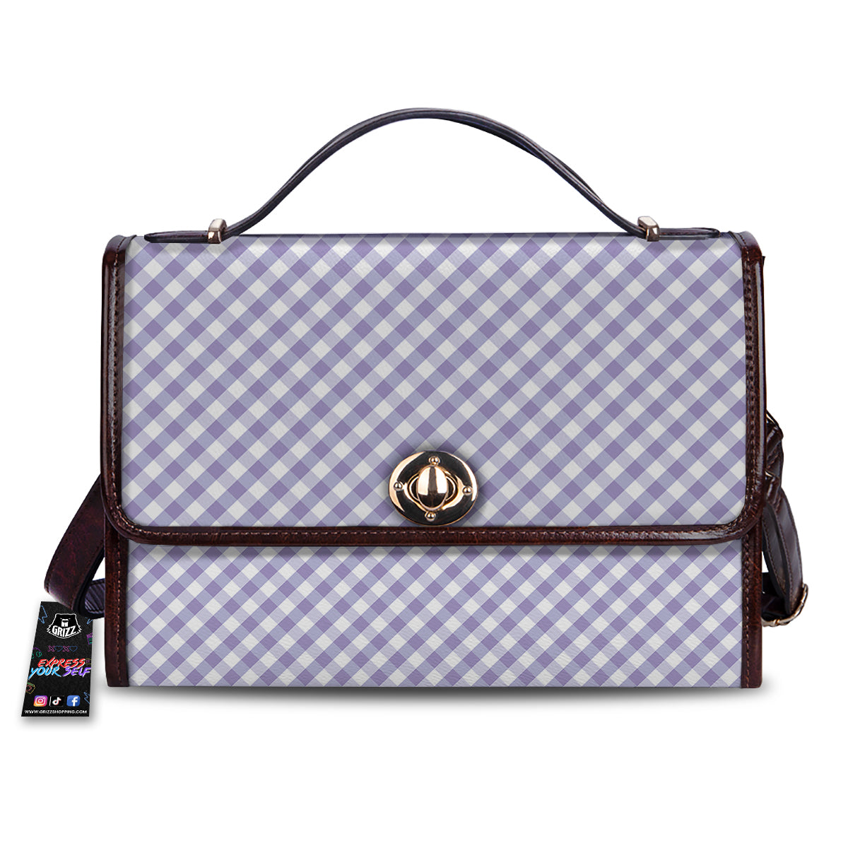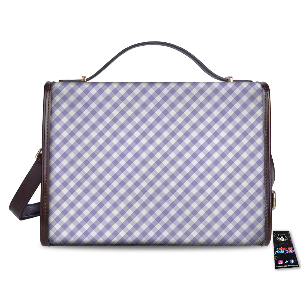 Gingham White And Violet Print Pattern Women’s Satchel Bag