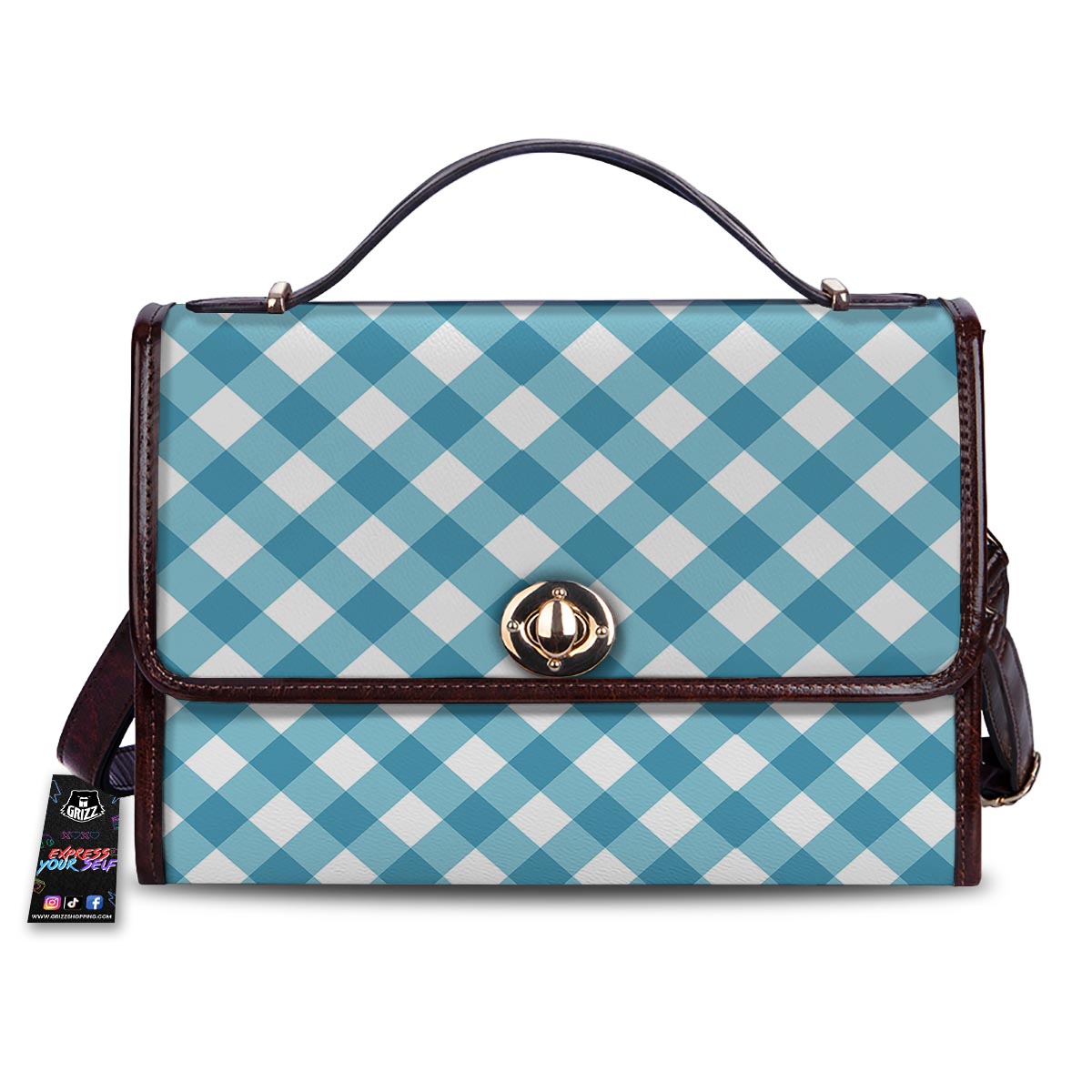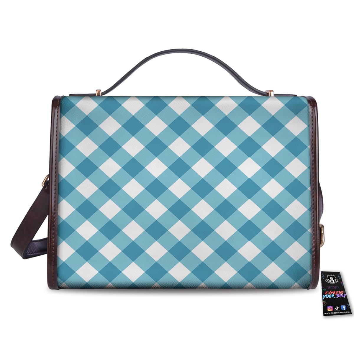 Gingham White And Teal Print Pattern Women’s Satchel Bag