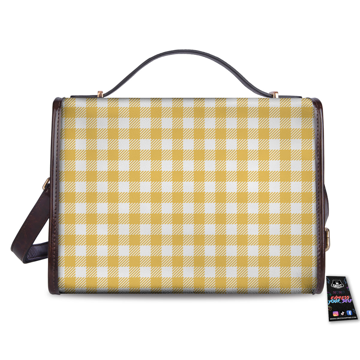 Gingham Yellow And White Print Pattern Women’s Satchel Bag