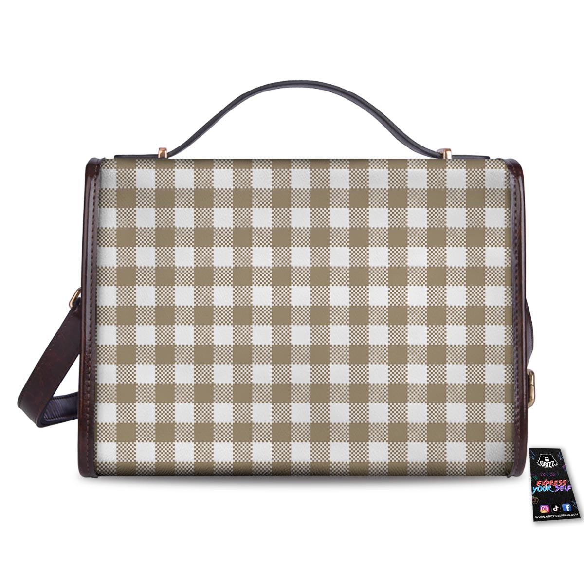 Gingham White And Tan Print Pattern Women’s Satchel Bag