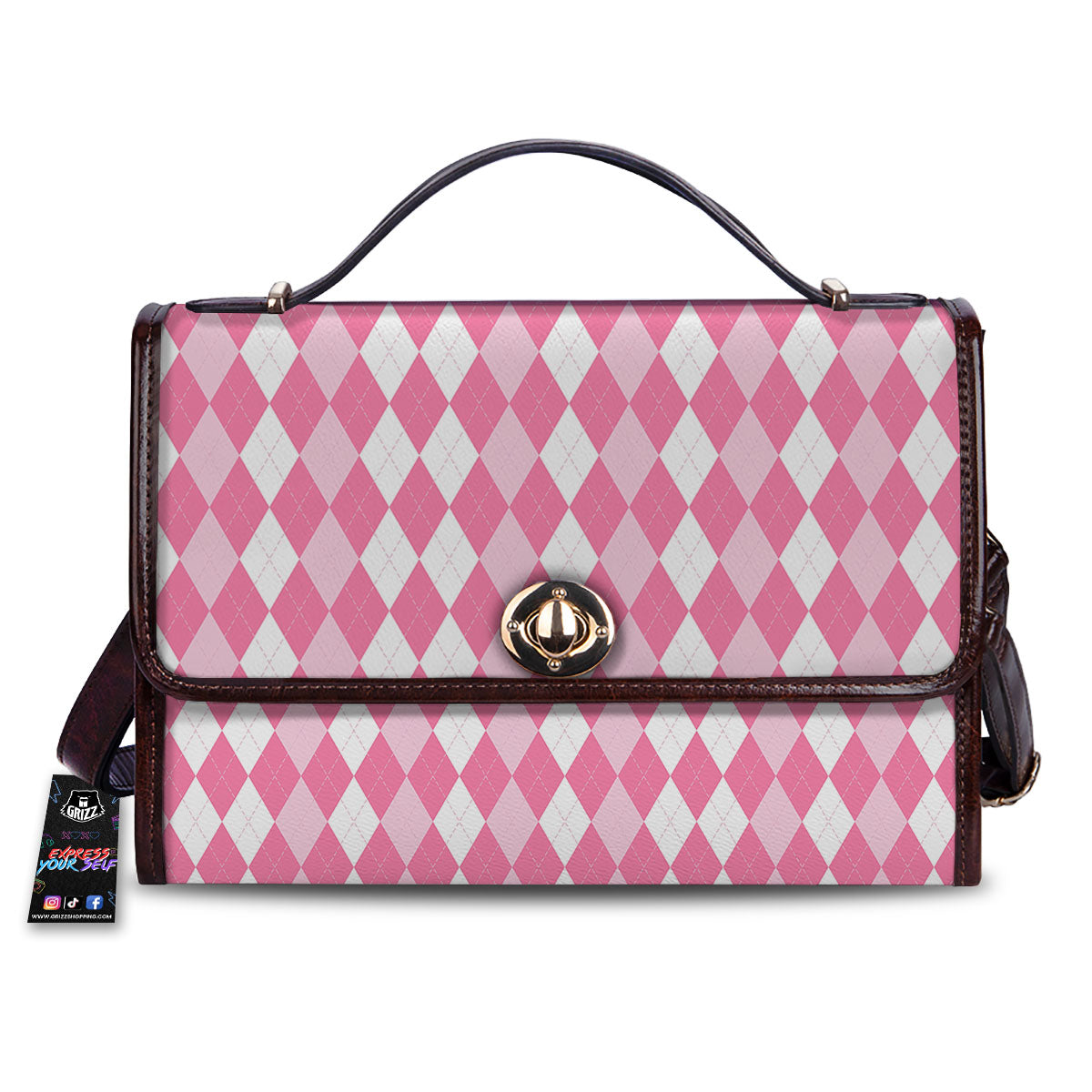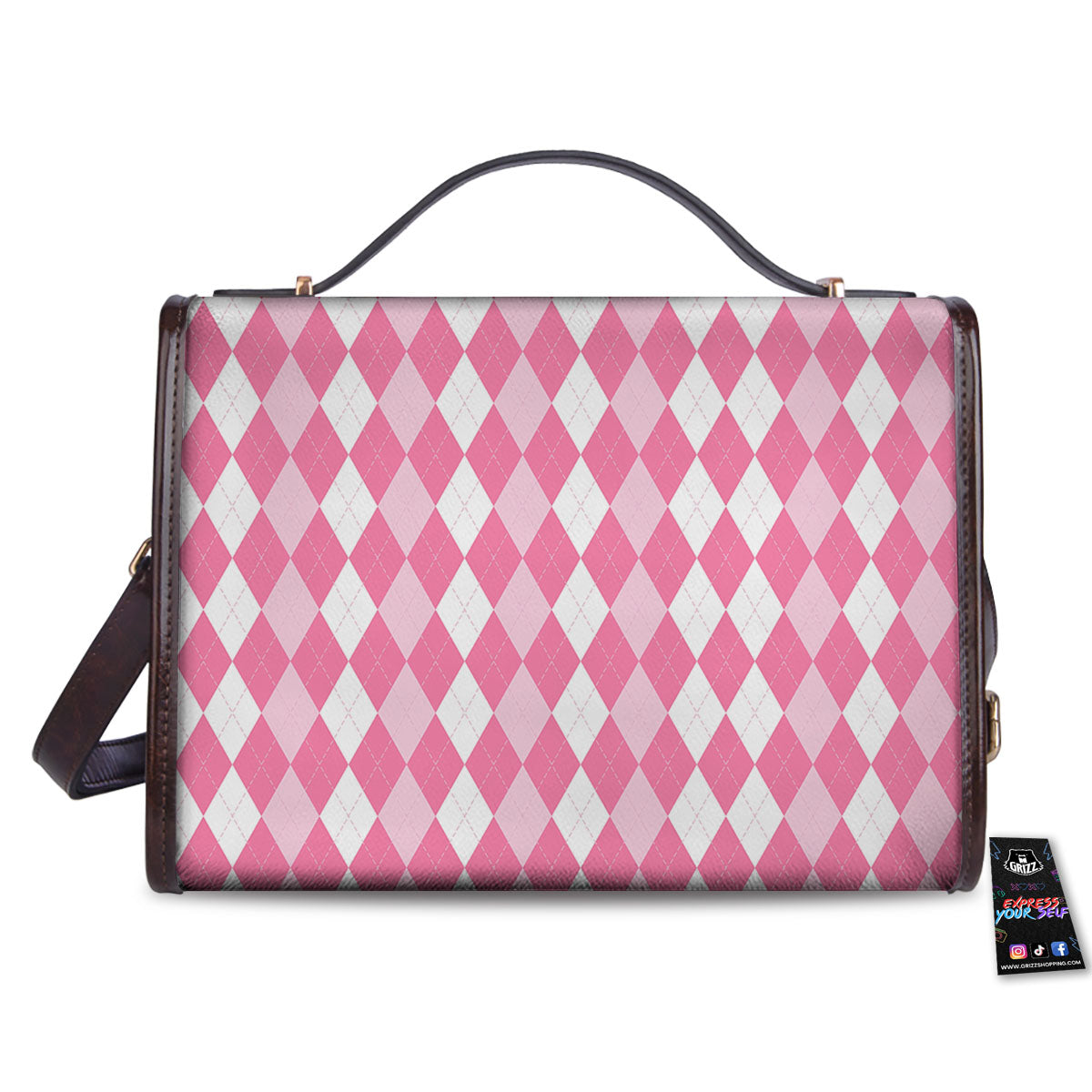 Argyle White And Pink Print Pattern Women’s Satchel Bag