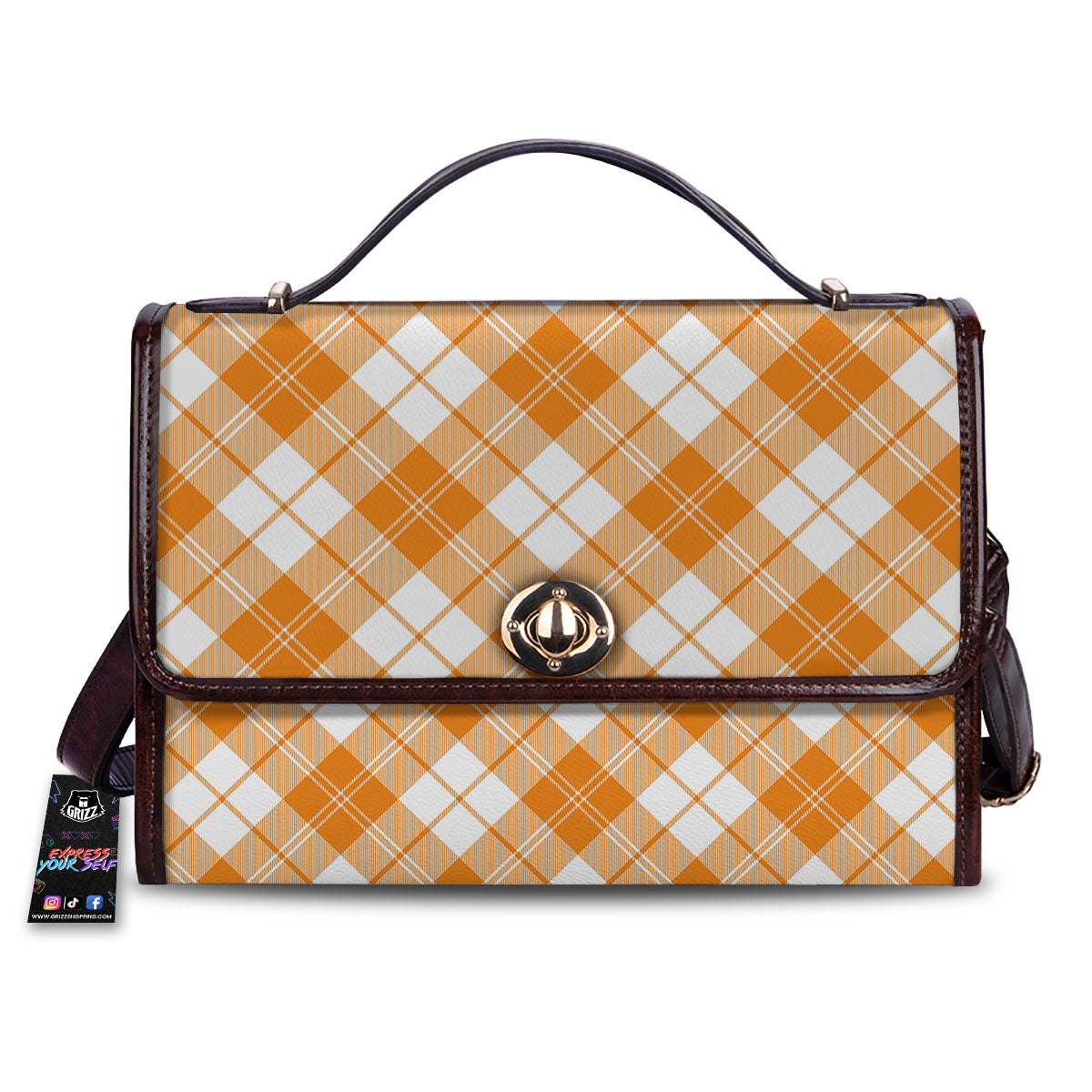Argyle White And Orange Print Pattern Women’s Satchel Bag