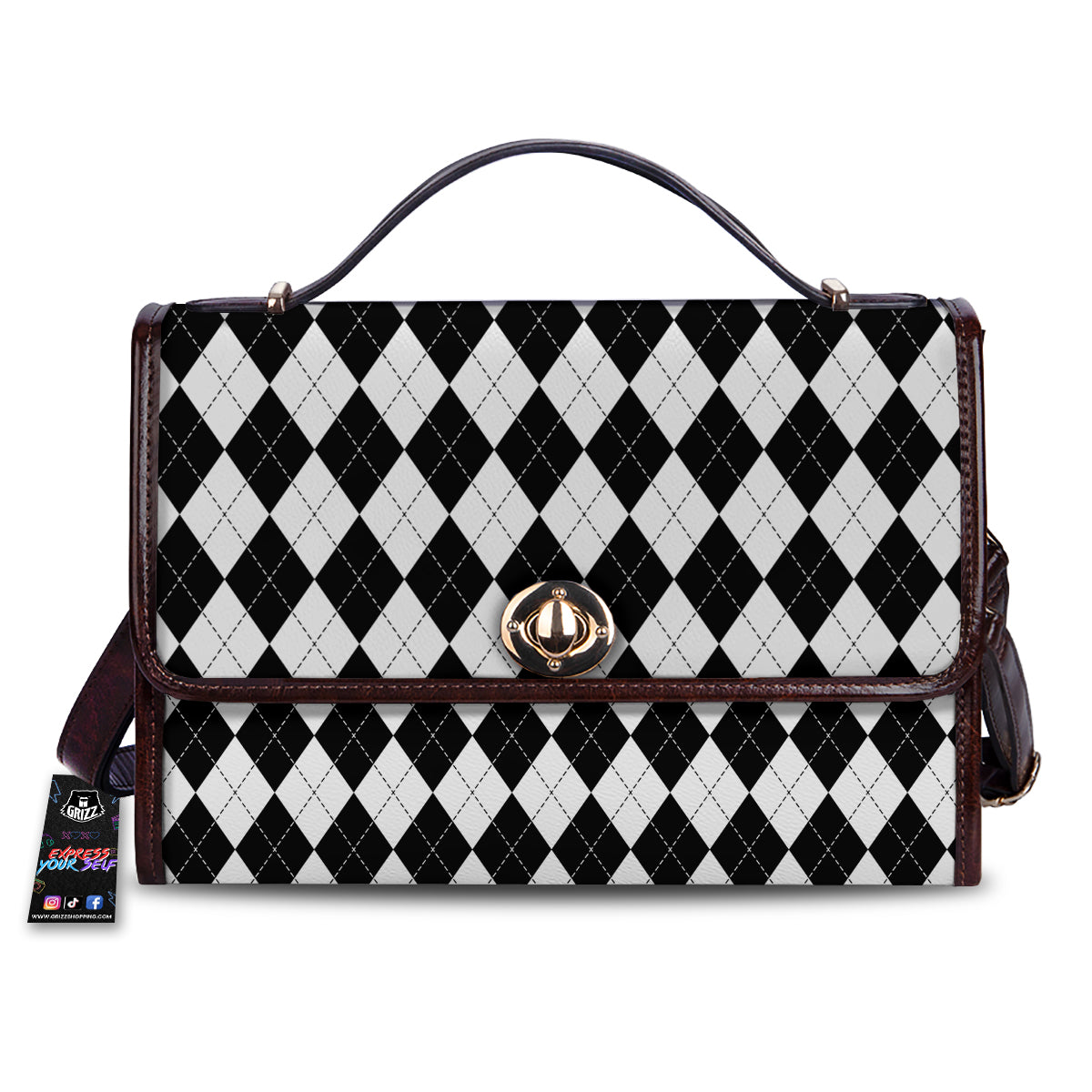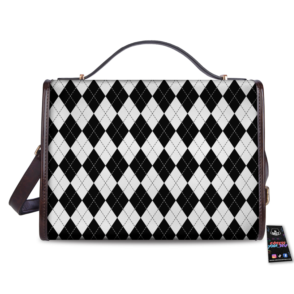 Argyle White And Black Print Pattern Women’s Satchel Bag