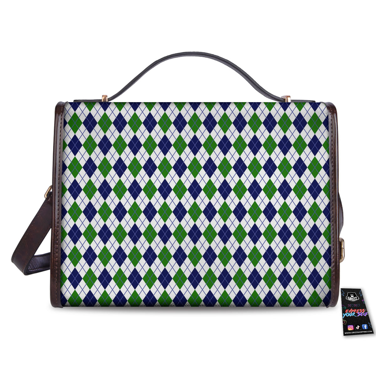 Green And White Navy Argyle Print Women’s Satchel Bag