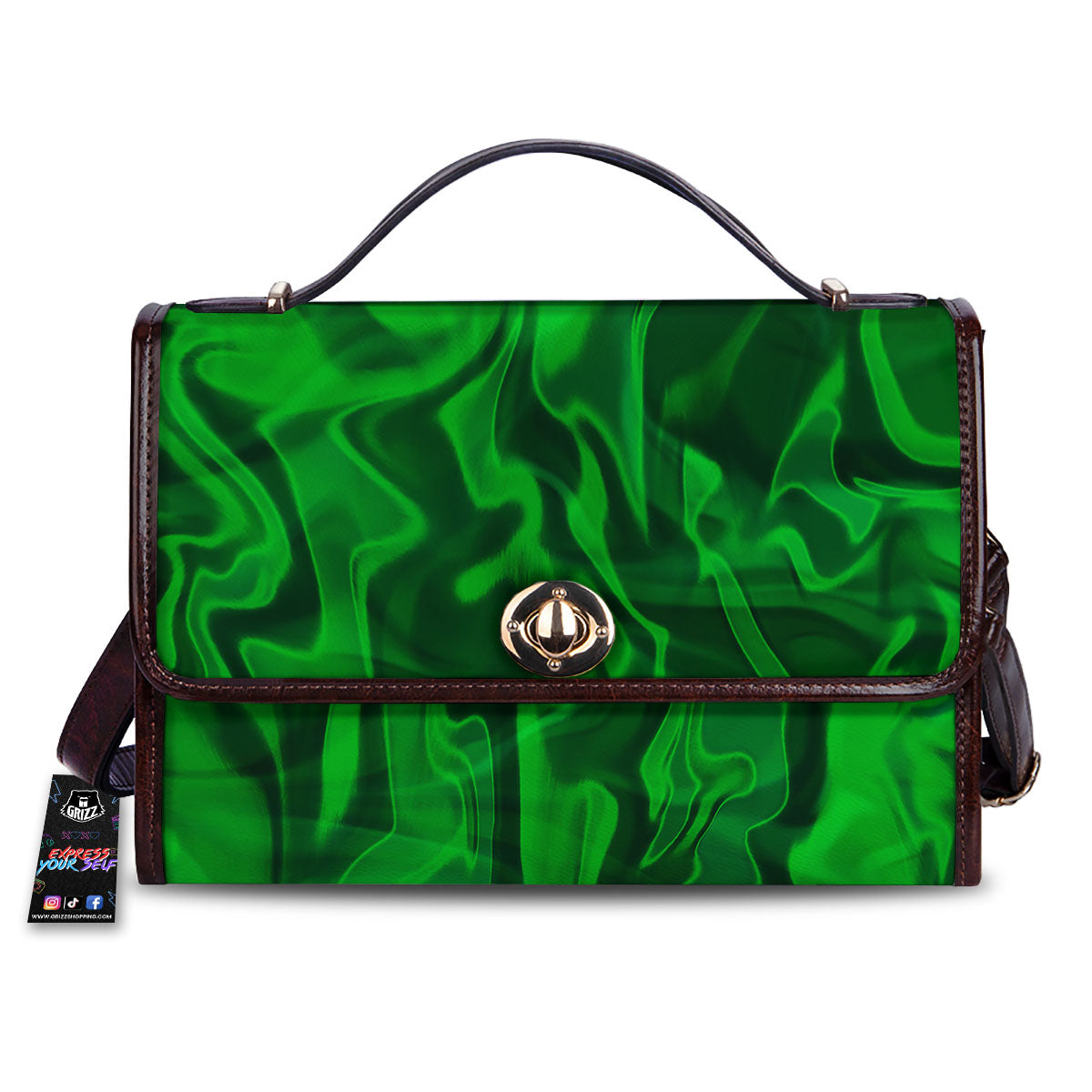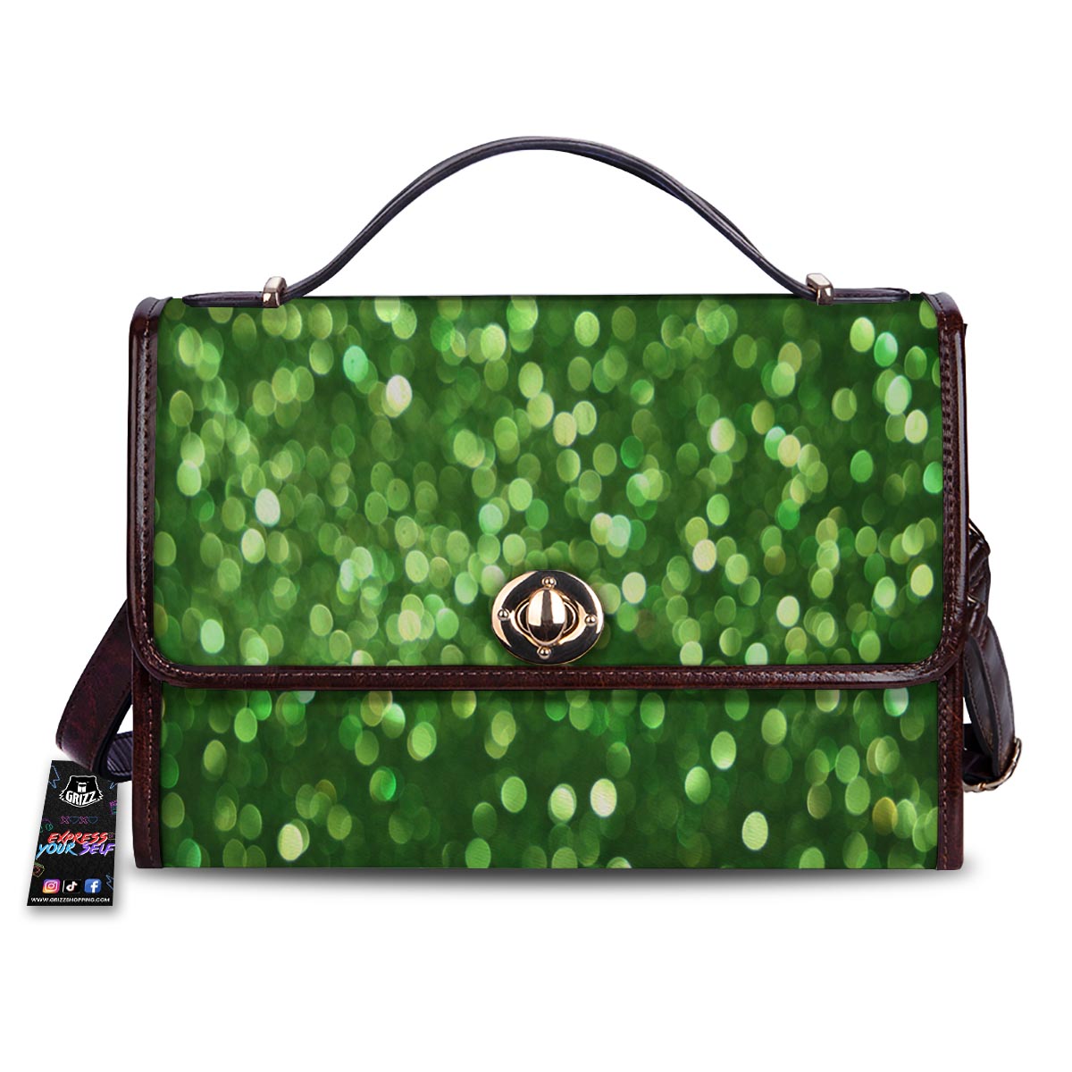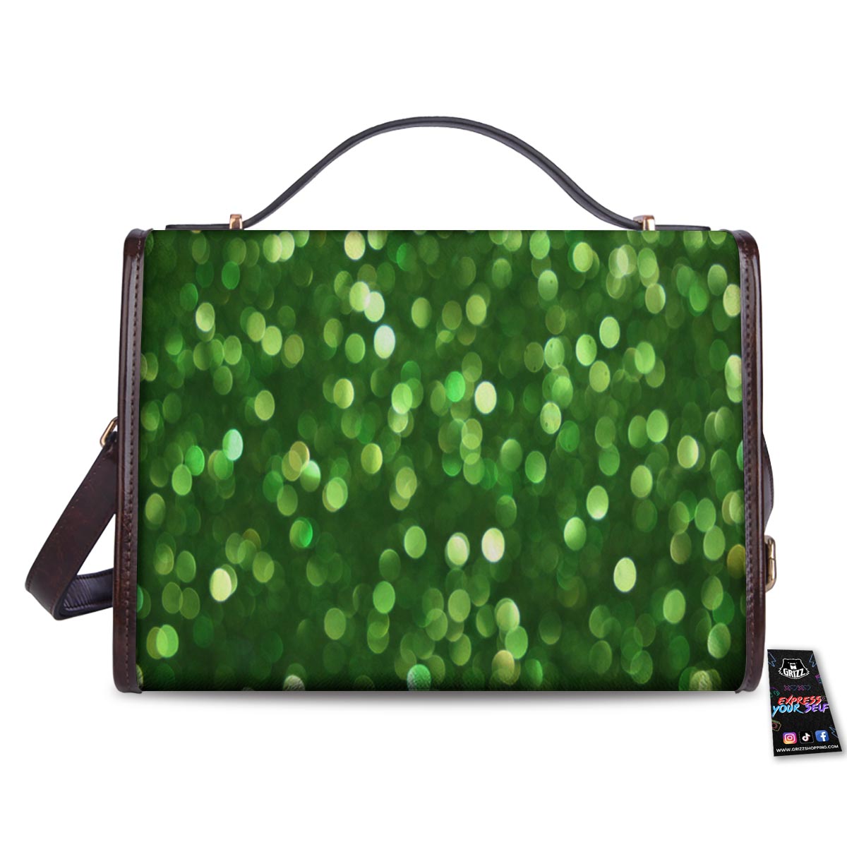 Green Glitter Artwork Shamrock Print Pattern Women’s Satchel Bag