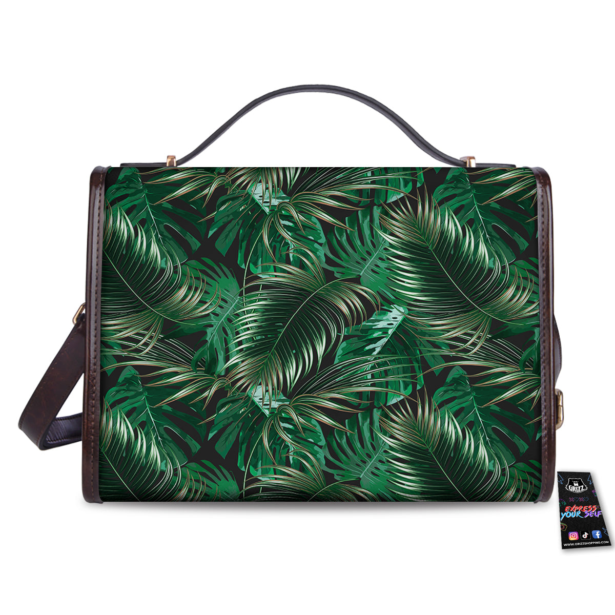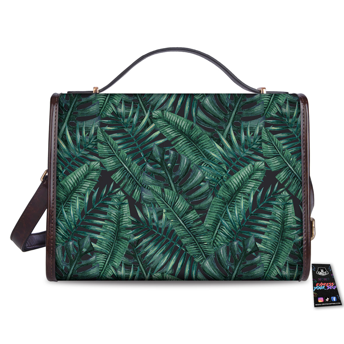 Green Leaves Tropical Print Pattern Women’s Satchel Bag