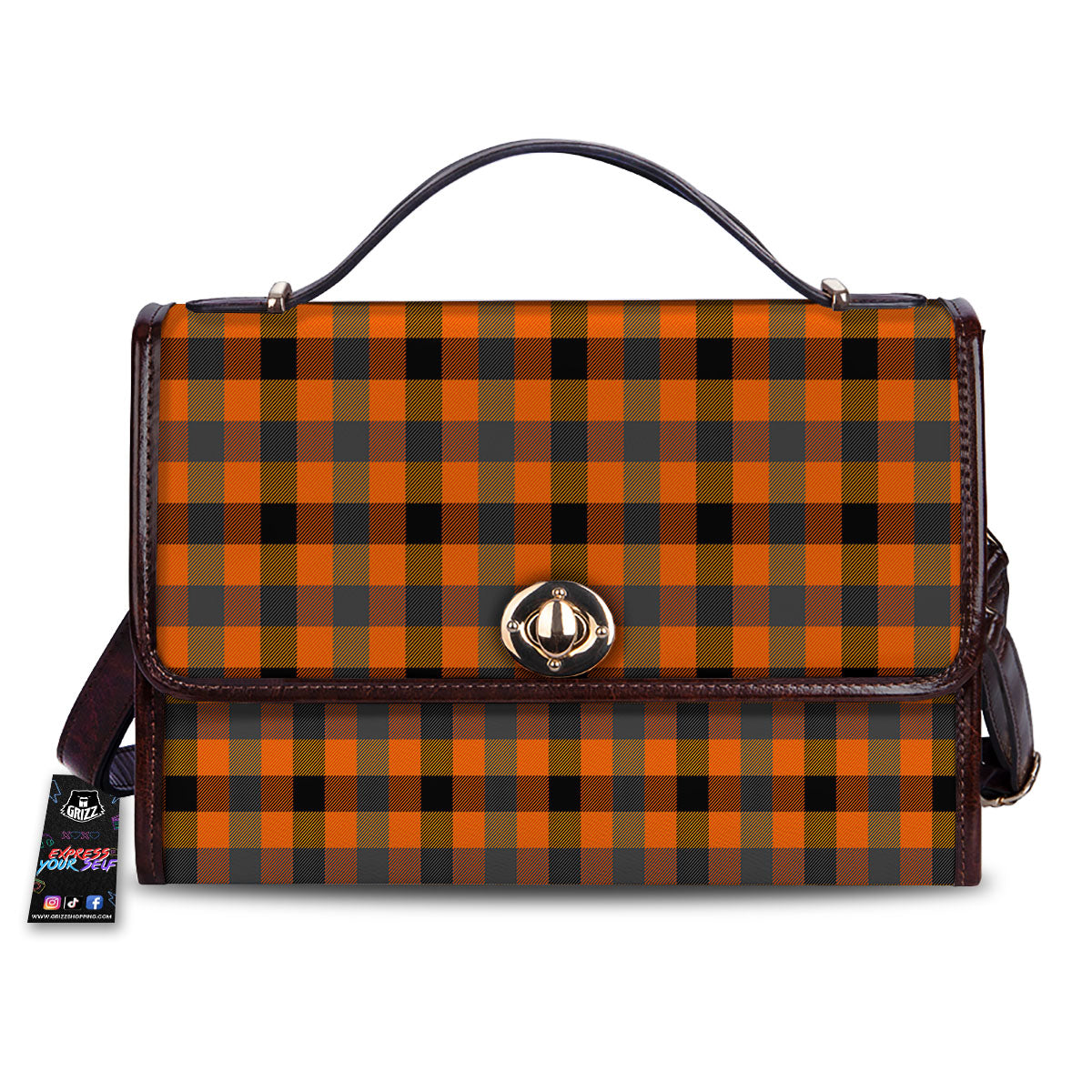 Grey Orange And White Tartan Print Pattern Women’s Satchel Bag