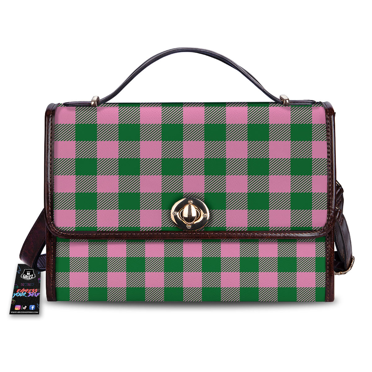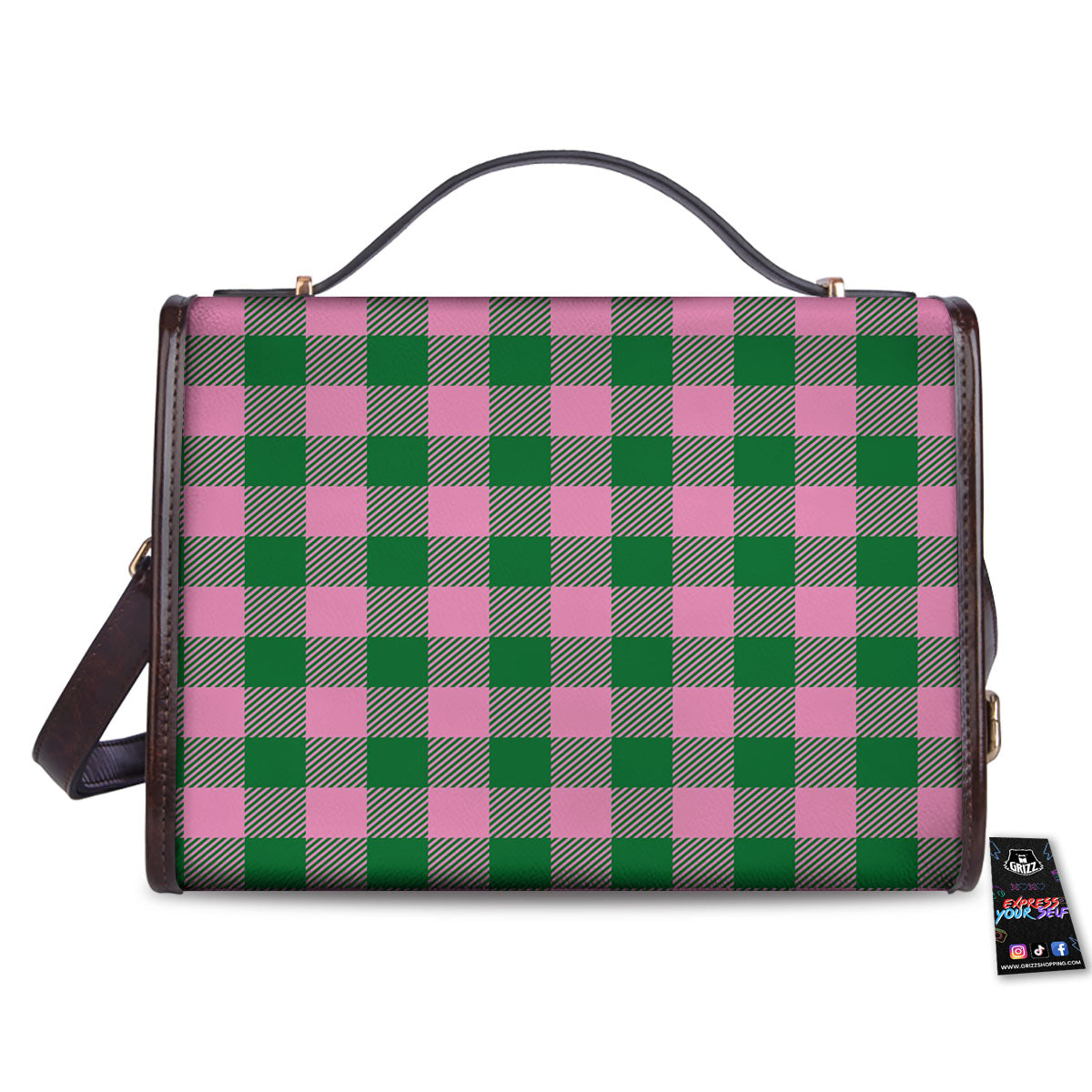 Green Pink And White Tartan Print Pattern Women’s Satchel Bag