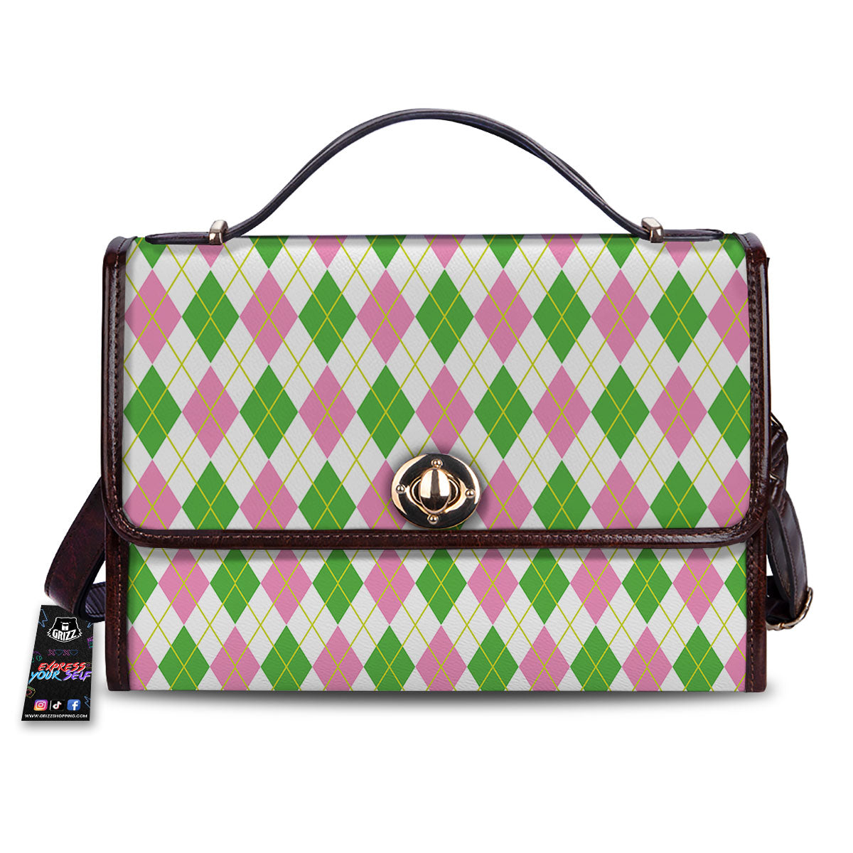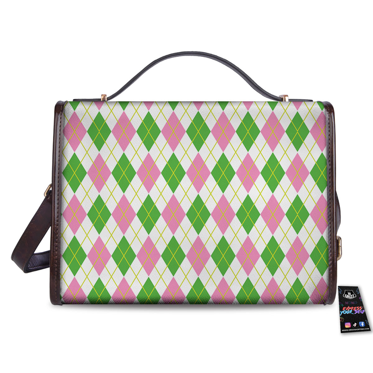 Green Pink And White Argyle Print Pattern Women’s Satchel Bag