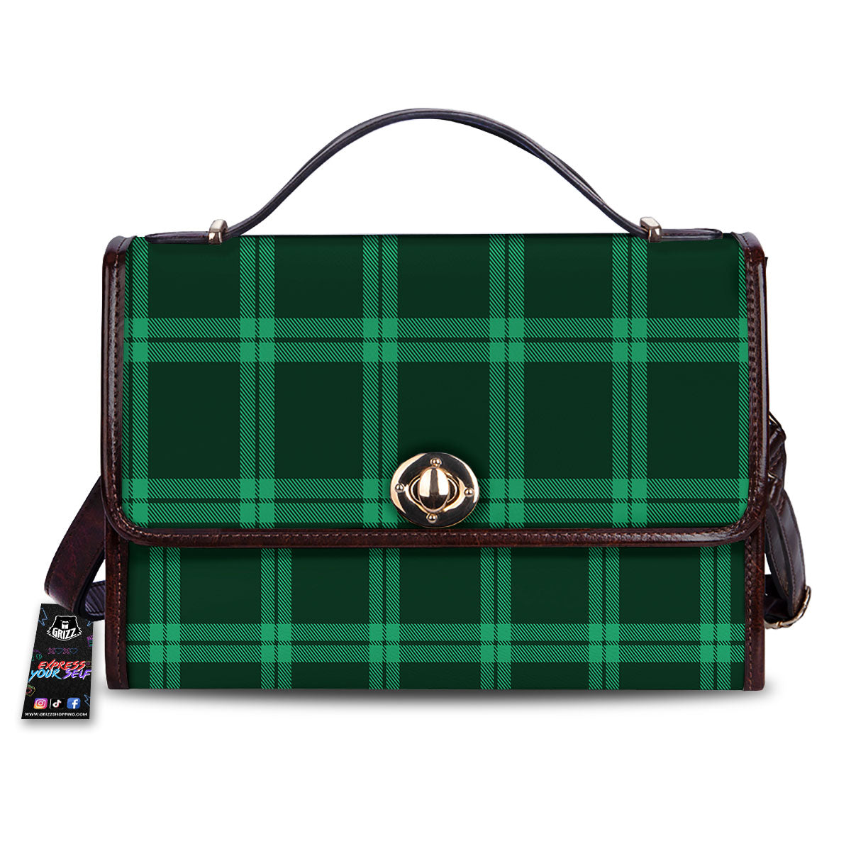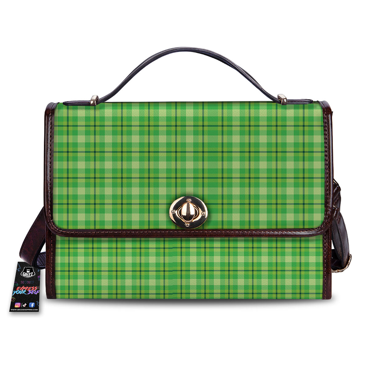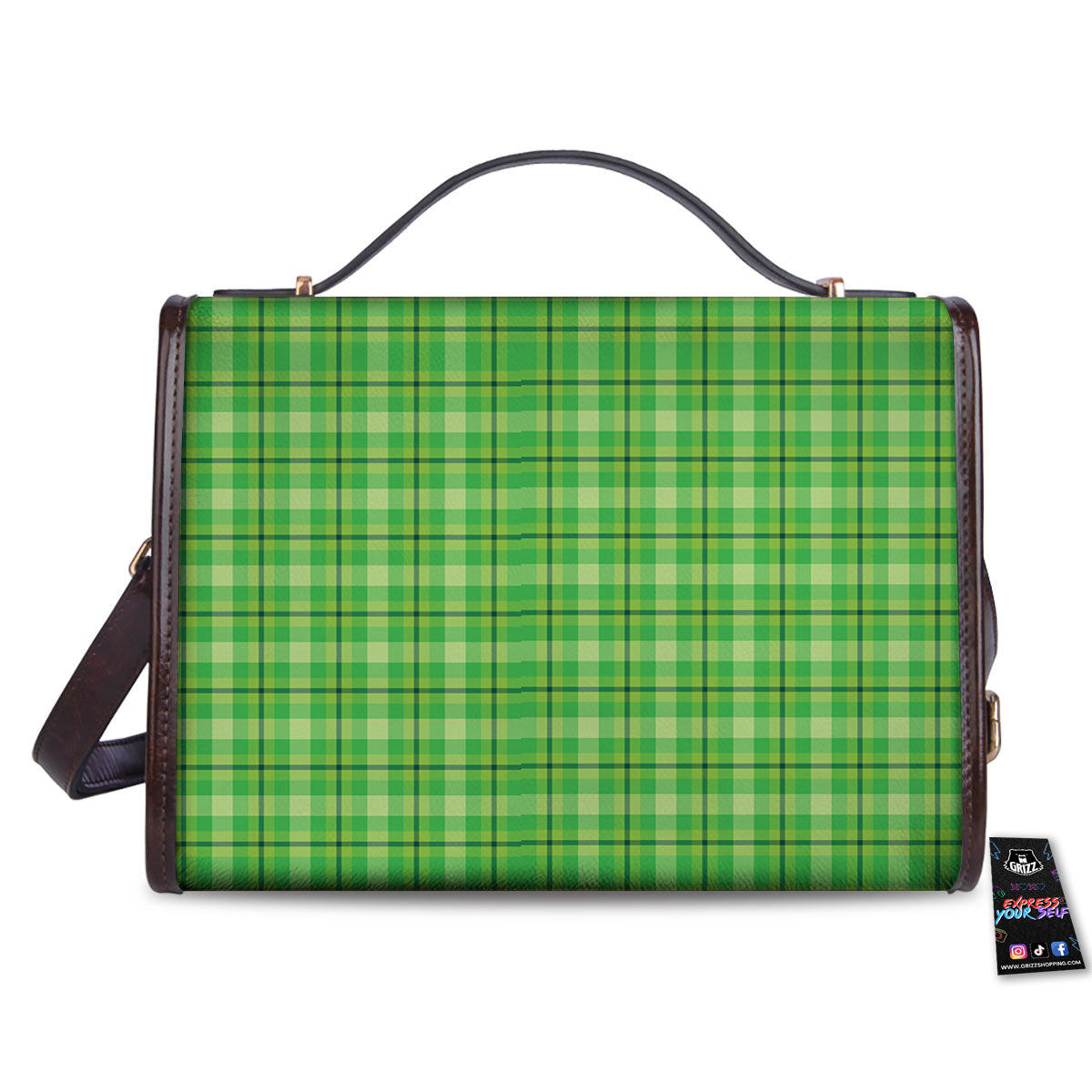 Green Plaid Shamrock Print Pattern Women’s Satchel Bag