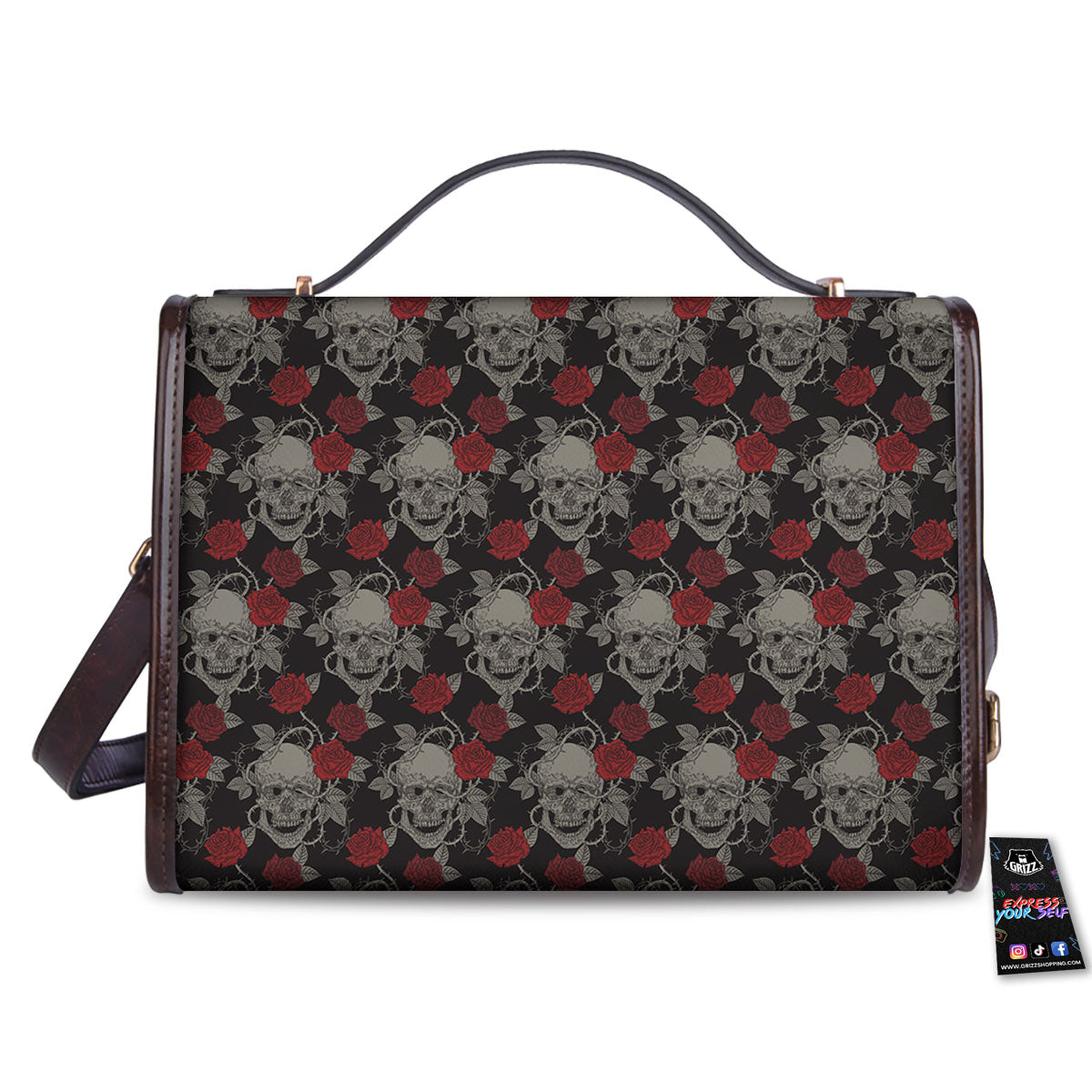 Grey Skull Red Rose Print Pattern Women’s Satchel Bag