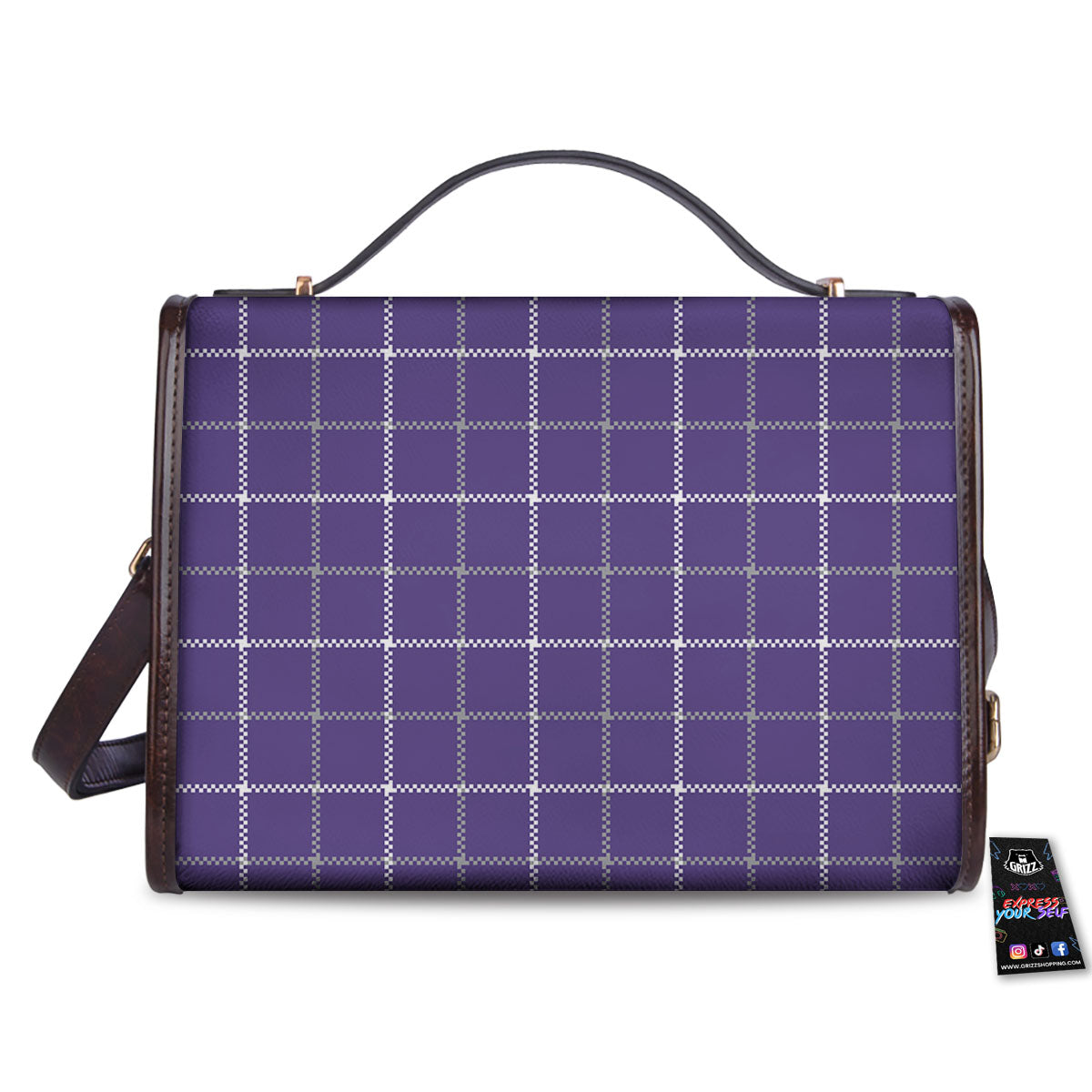 Grey Purple And White Tattersall Print Pattern Women’s Satchel Bag