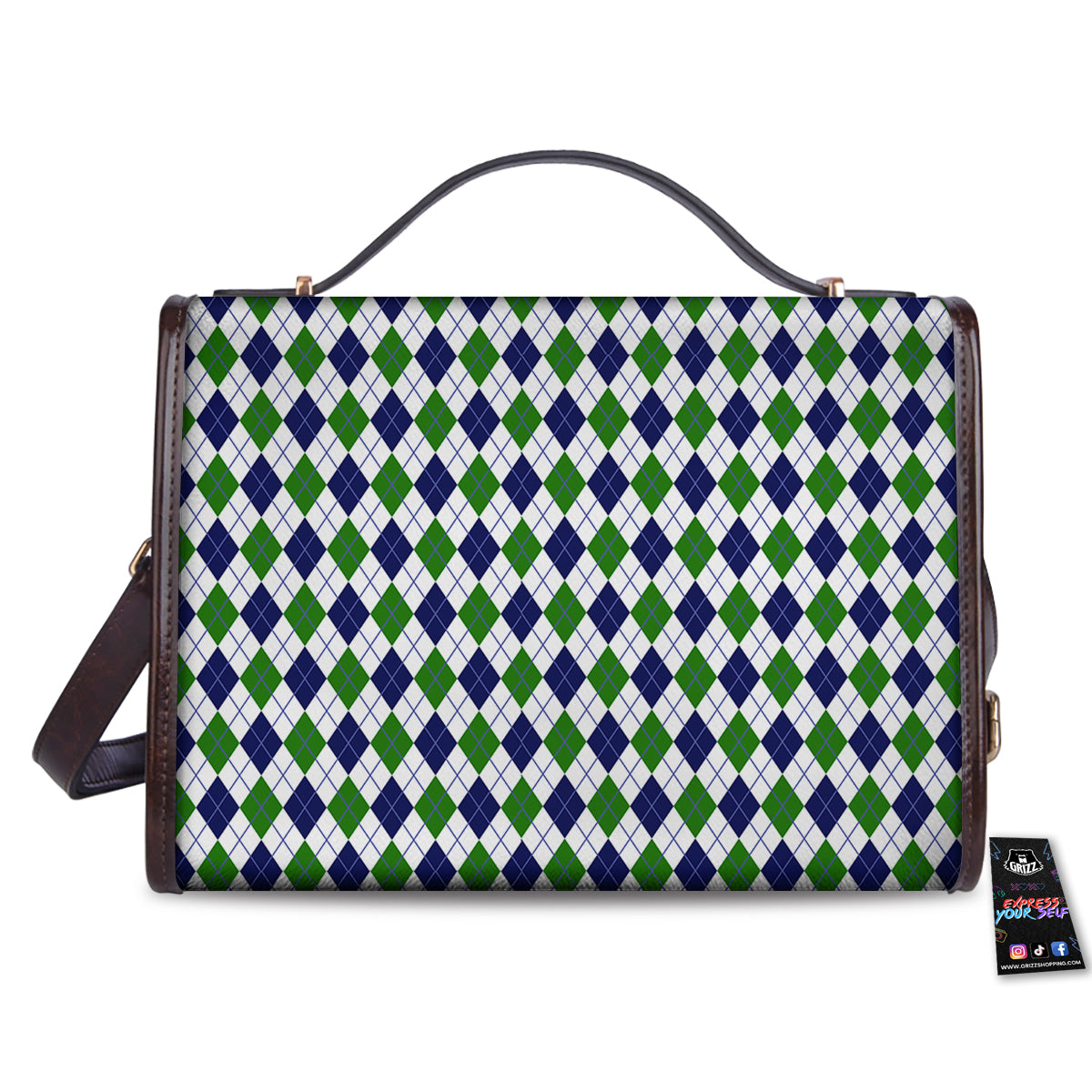 Green White And Navy Argyle Print Pattern Women’s Satchel Bag