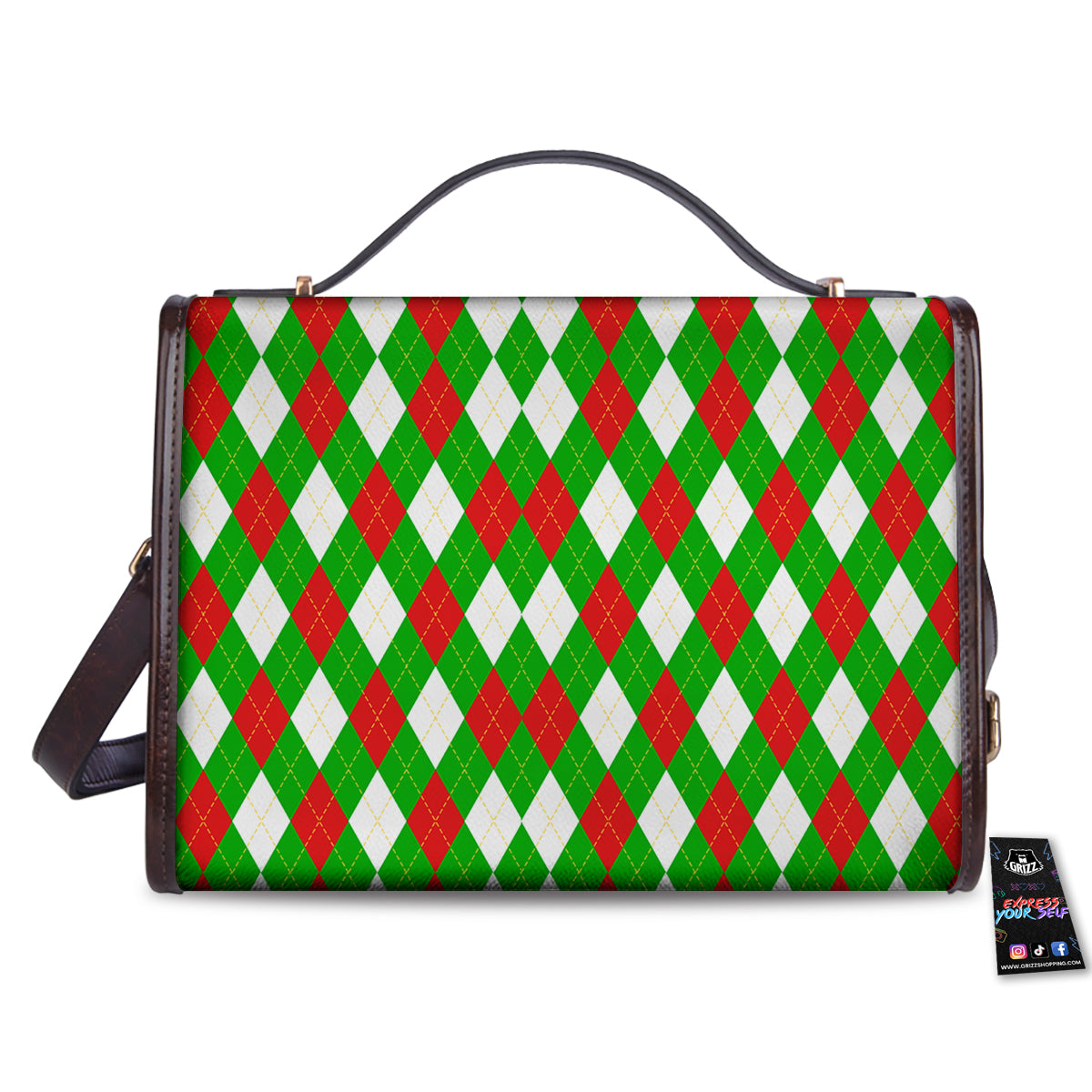 Green White And Red Argyle Print Pattern Women’s Satchel Bag