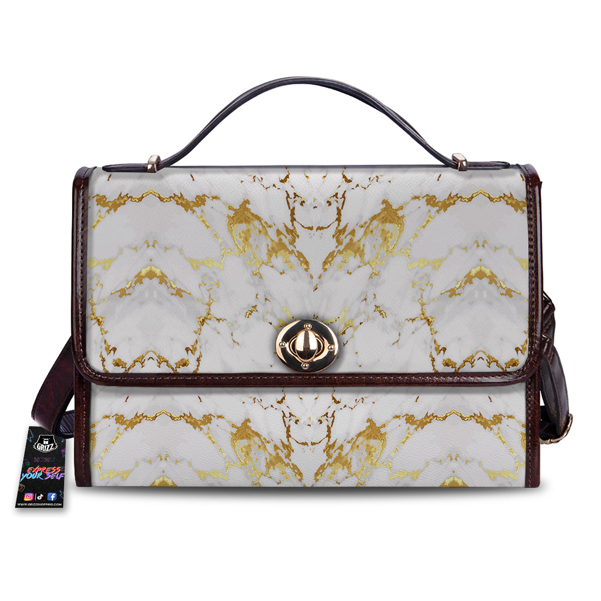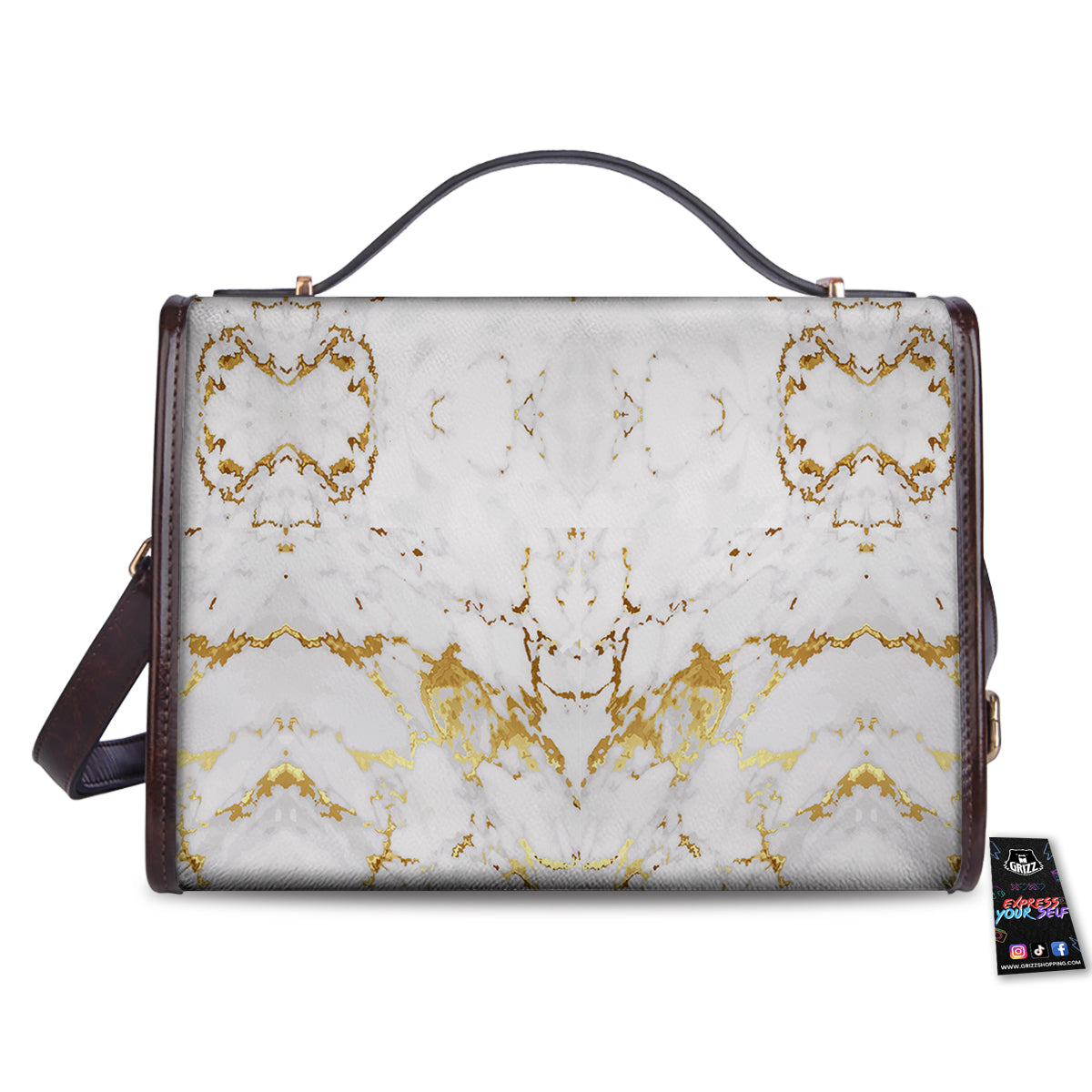 Grunge Marble White Gold Print Pattern Women’s Satchel Bag