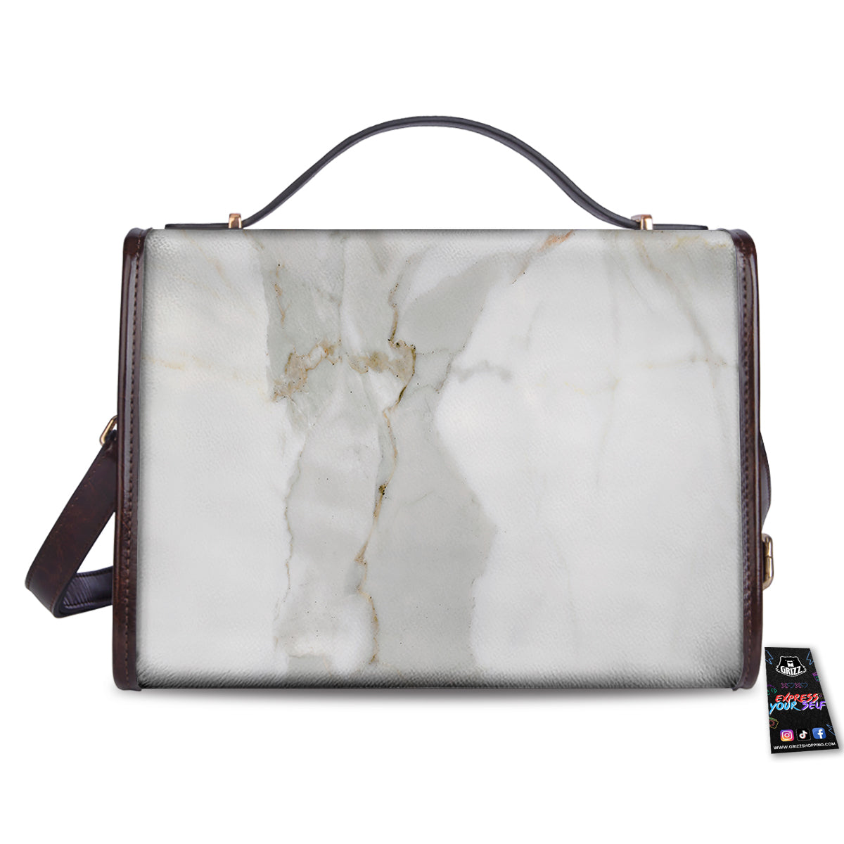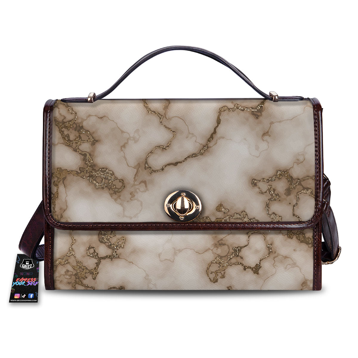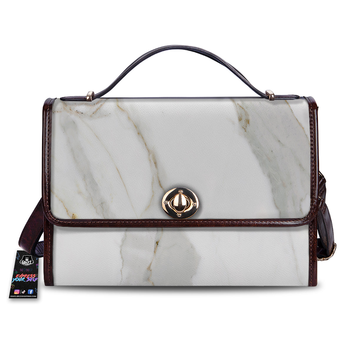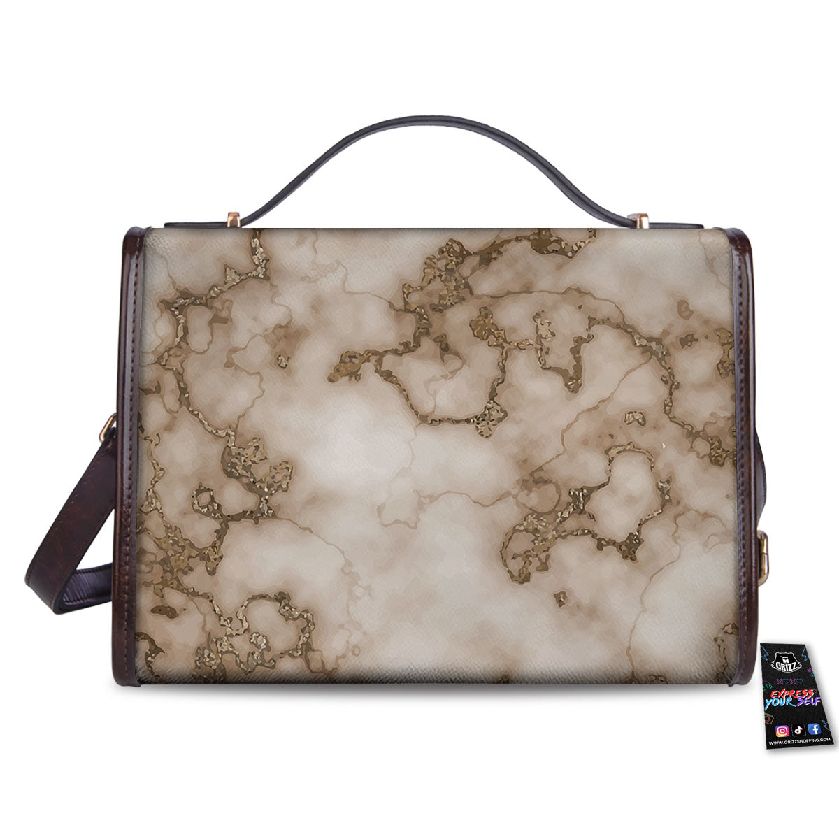 Grunge Marble White Brown Print Pattern Women’s Satchel Bag