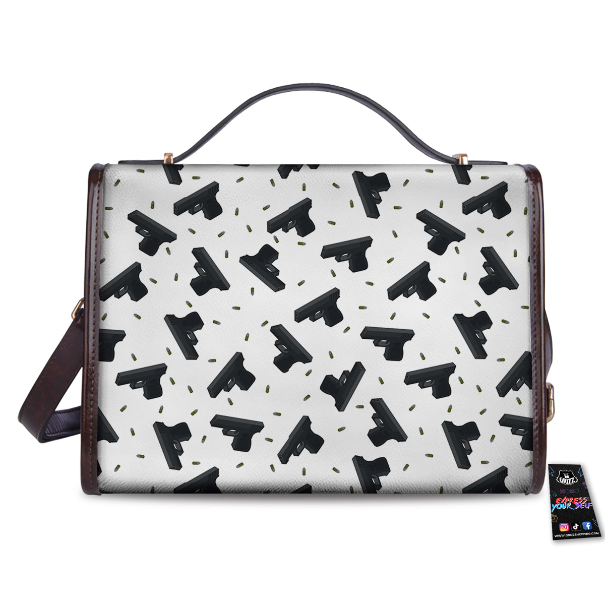 Gun Bullet White And Black Print Pattern Women’s Satchel Bag