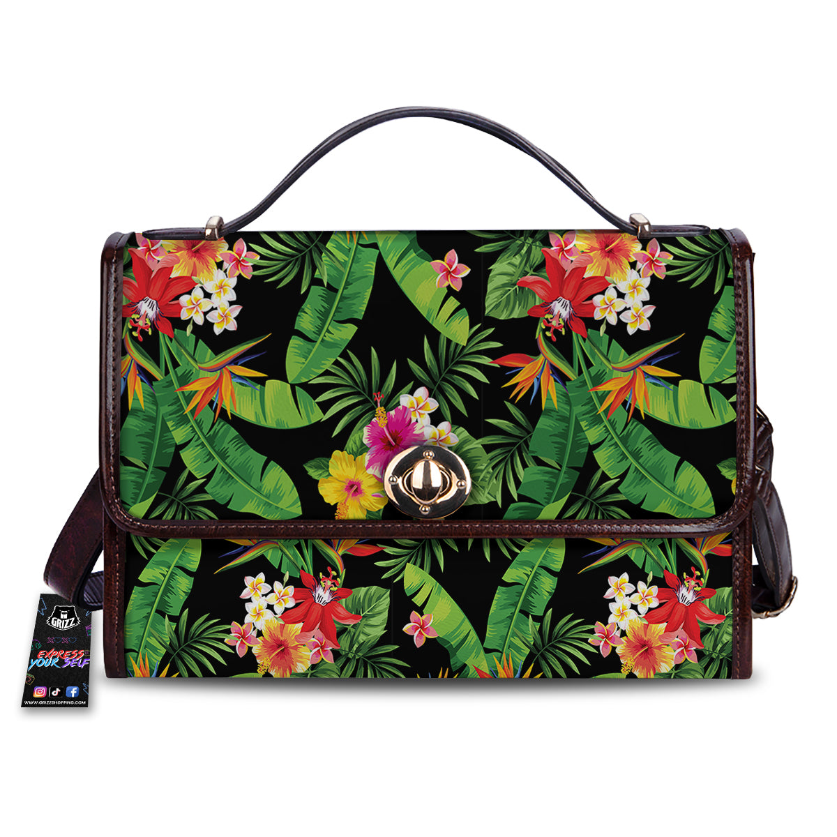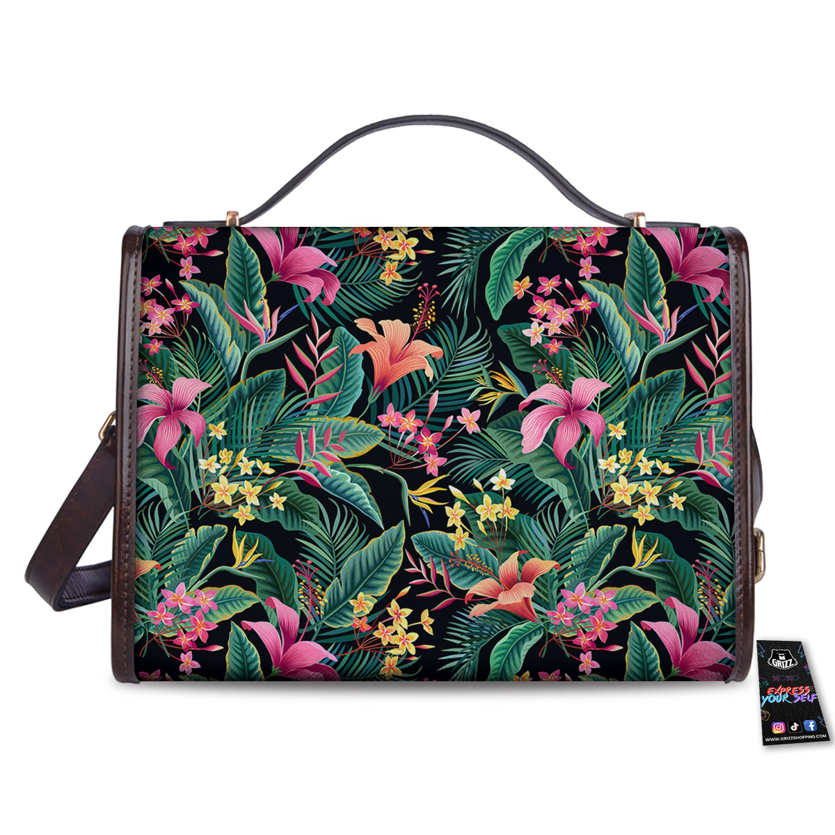 Hawaiian Flower And Tropical Leaf Print Pattern Women’s Satchel Bag