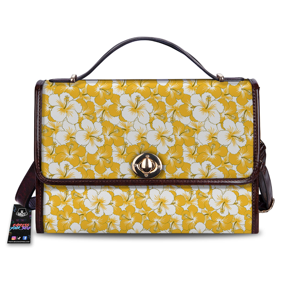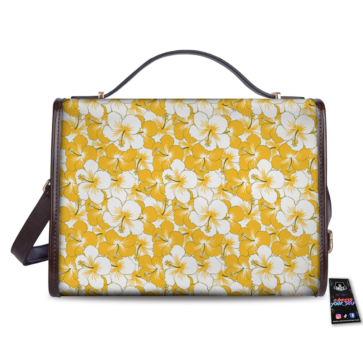 Hibiscus Flower And Camo Yellow Print Pattern Women’s Satchel Bag