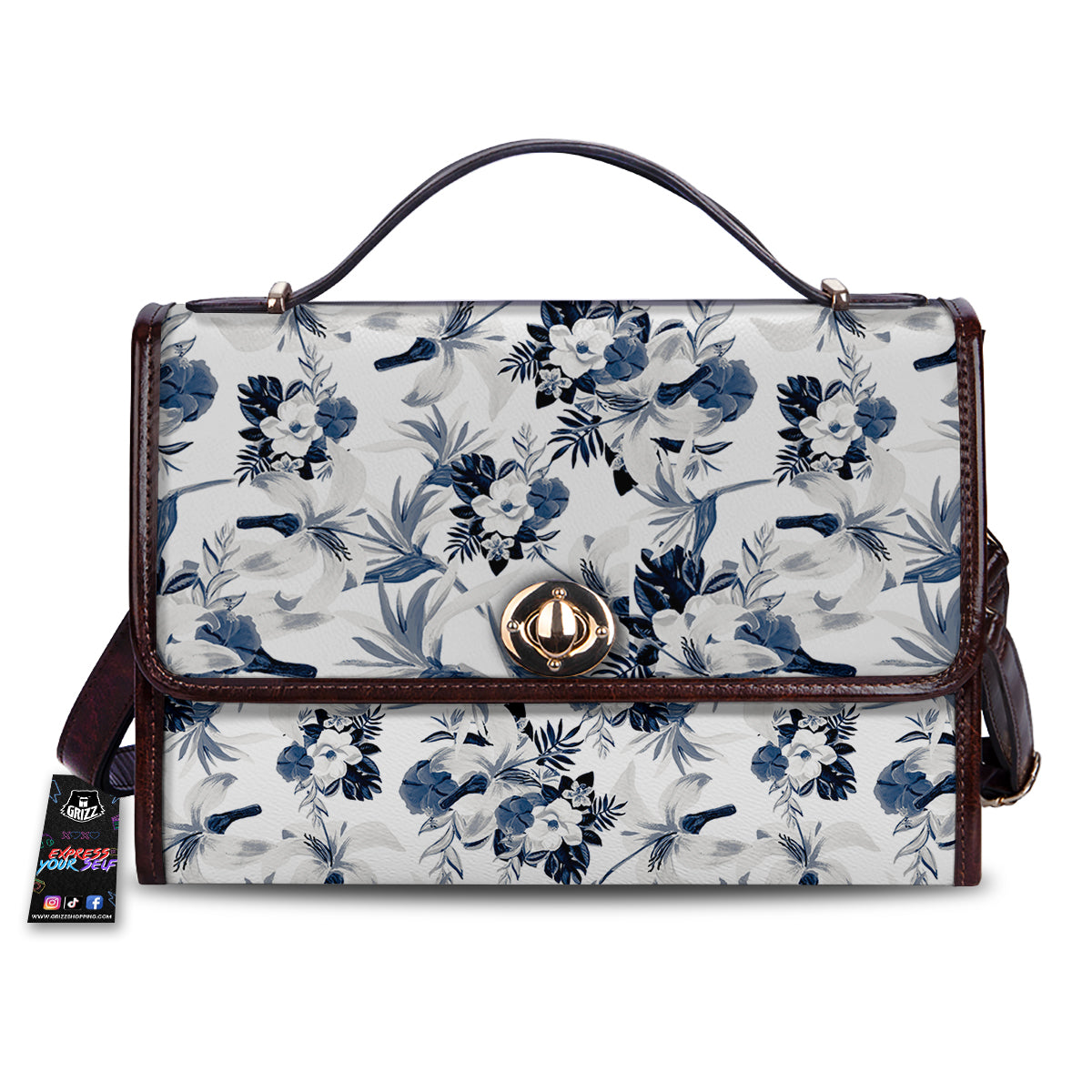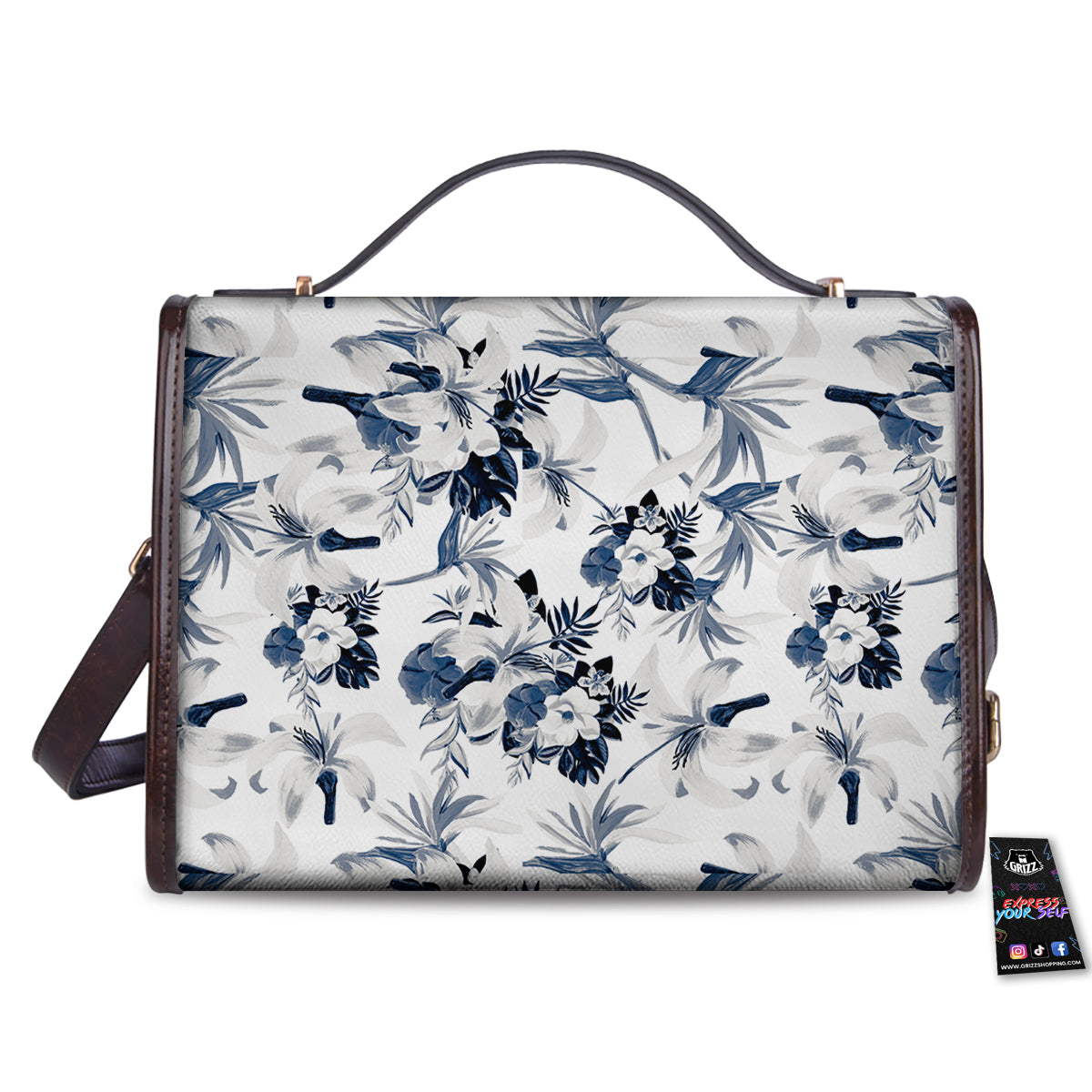 Hibiscus Floral White And Blue Print Pattern Women’s Satchel Bag