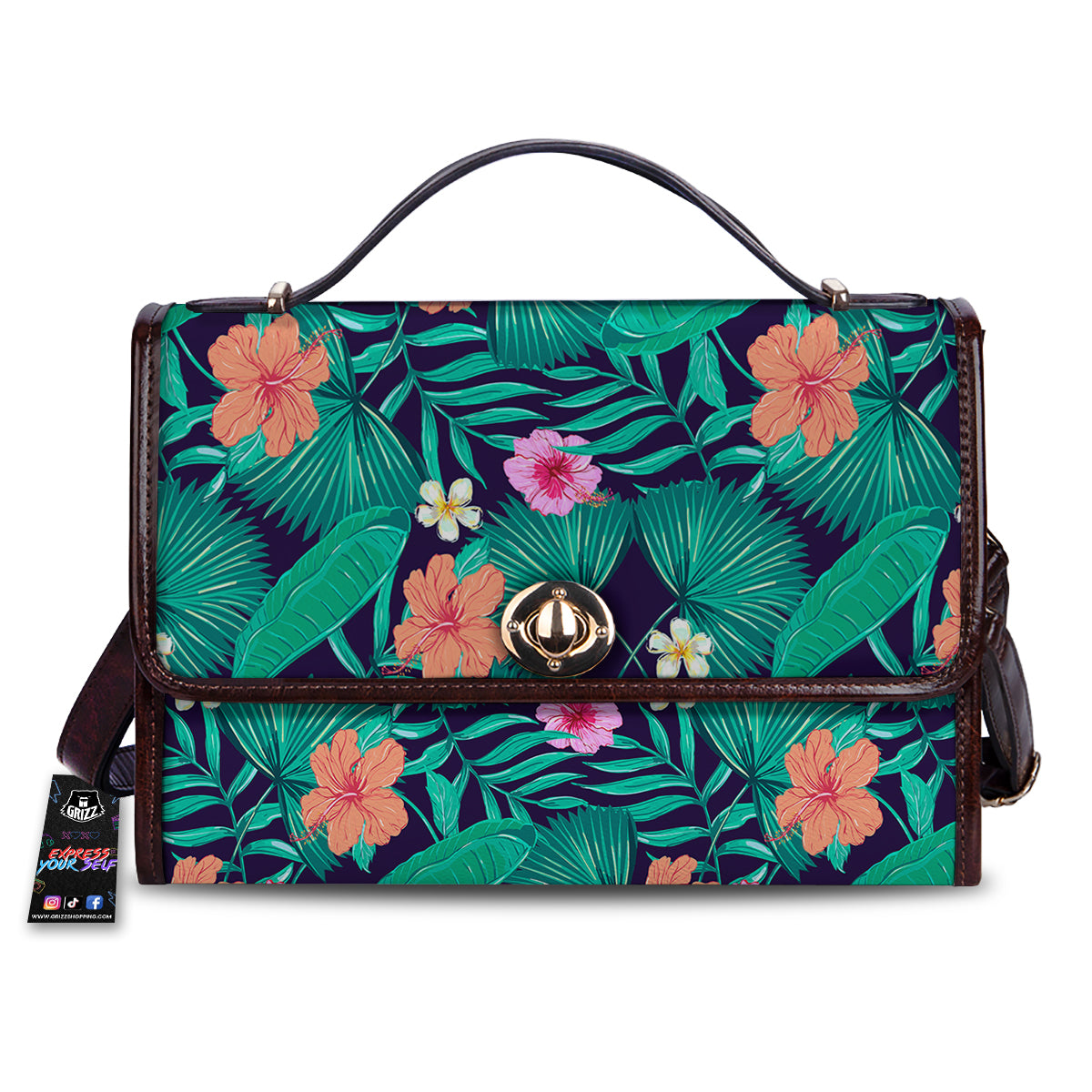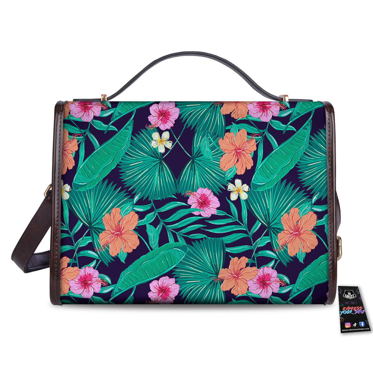 Hibiscus And Tropical Palm Print Pattern Women’s Satchel Bag