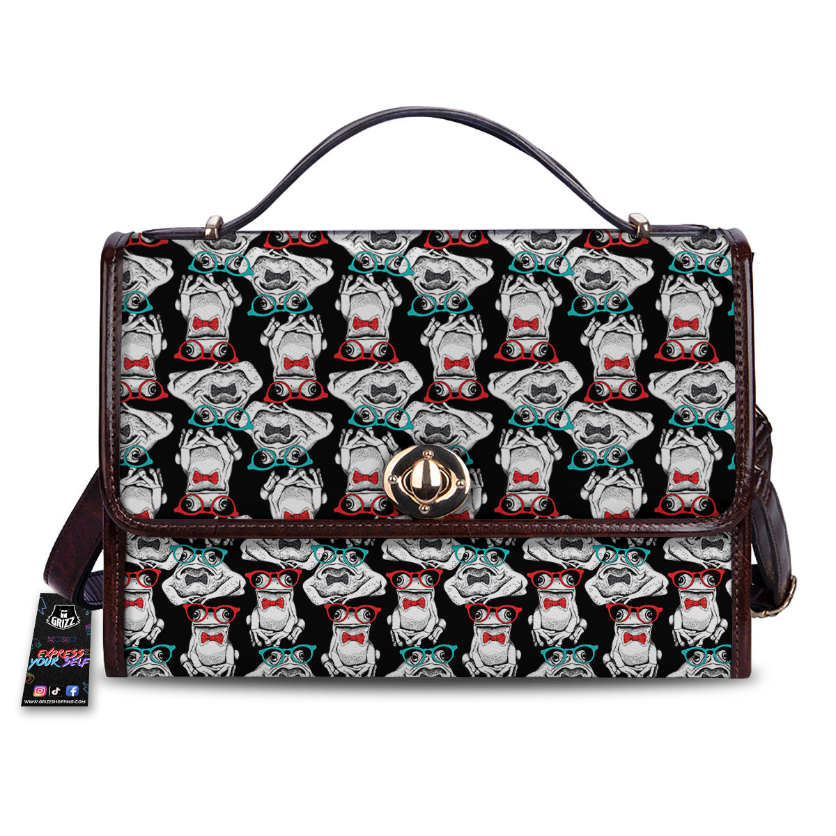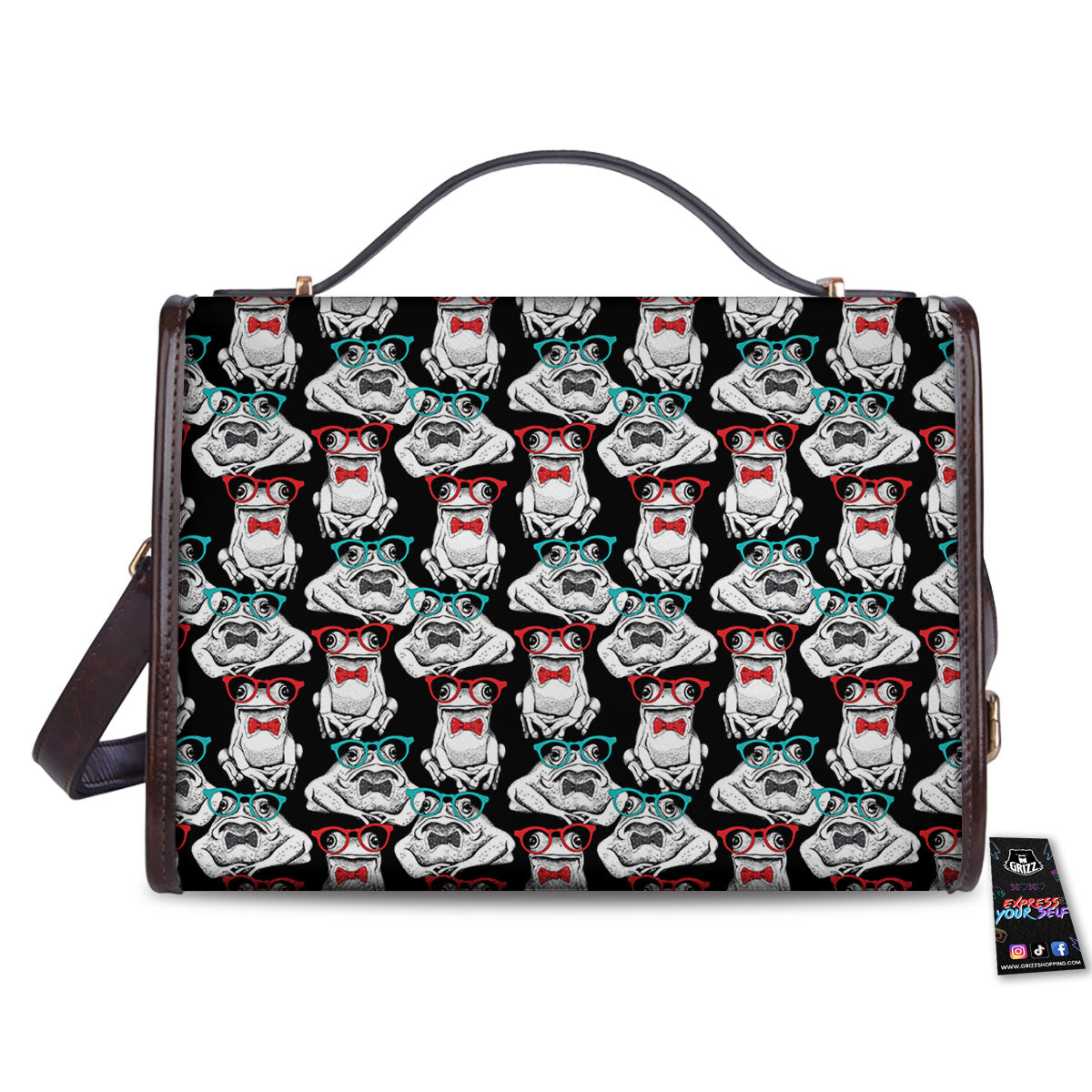 Hipster Frog Print Pattern Women’s Satchel Bag