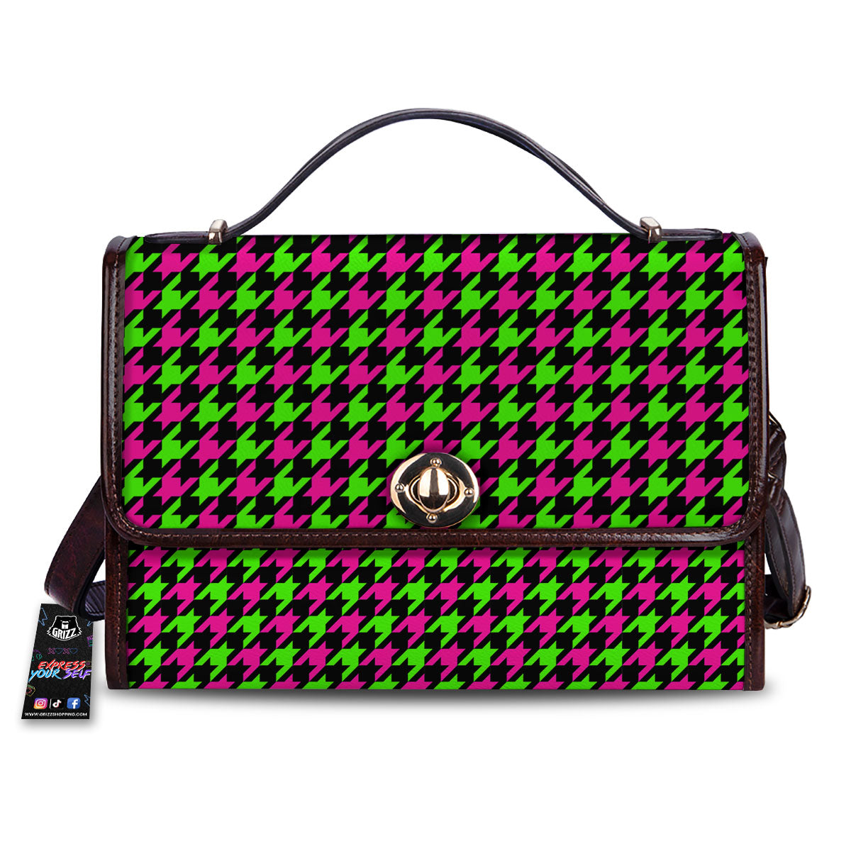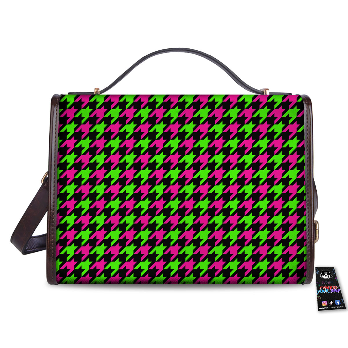 Houndstooth Green And Pink Print Pattern Women’s Satchel Bag